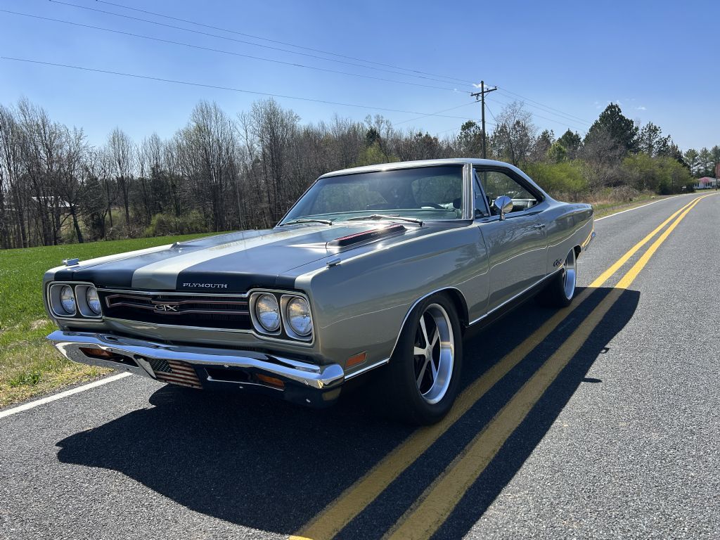 ![]() Click on the image for a larger picture. 1969 PLYMOUTH GTX SEDAN - SOLD! SOLD! True RS Code GTX Numbers matching 440 CI 375 hp engine 6 Pack 4 Speed with pistol grip shifter Air Grabber hood Power 4 wheel disc brakes Power steering Electric exhaust cutouts 8 ¾” Dana sure grip rear end cast #2881489 This GTX has received a very comprehensive, highly detailed rotisserie with attention to detail throughout. The goal of the build was to keep it true to the way it left the factory back in 1969 with some personal upgrades so the automatic was upgraded to a pistol grip 4 speed transmission and the 4 barrel carb was upgraded to the famous 6 pack carbs. When you walk around this GTX, the first thing that you notice is the flawlessly applied silver metallic paint that looks a mile deep over lazer straight panels. Open the door and the same attention to detail is evident throughout as the inside looks factory fresh sporting the 150 mph speedometer, tach and the awesome pistol grip shifter. A flaming river tilt column was added during the restoration to add another driver comfort item. Lets take a look at the engine compartment. When you pull the hood latch, the first thing you notice is the fresh numbers matching 440 CI 375 hp engine. Once again, the engine compartment is factory fresh with attention to detail. The underside is just as neat and tidy as the rest of the GTX. Sporting 4 wheel power disc brakes and electronic exhaust cut outs along with the 4 speed transmission and the 8 ¾” Dana sure grip rear end. Absolutely a show quality GTX. The fit and finish is fantastic. Included in the sale are a set of 4 magnum 500 wheels with redline Firestone Tires. A complete receipt book is also included in the sale. You will be hard pressed to find a nicer 69 GTX anywhere. Please do not call offering to help sell this vehicle.