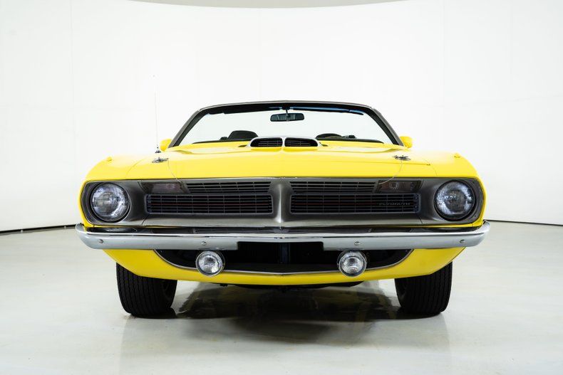Finished in eye-catching Lemon Twist Yellow, this Cuda features a power-operated black soft top for open-air cruising. Inside, black vinyl bucket seats, a center console with a Pistol Grip shifter, and power steering create the perfect mix of performance and comfort. Power front disc brakes ensure confident stopping power, while 15-inch Mopar Rally wheels wrapped in period-correct Goodyear F60-15 tires complete the classic muscle car stance.