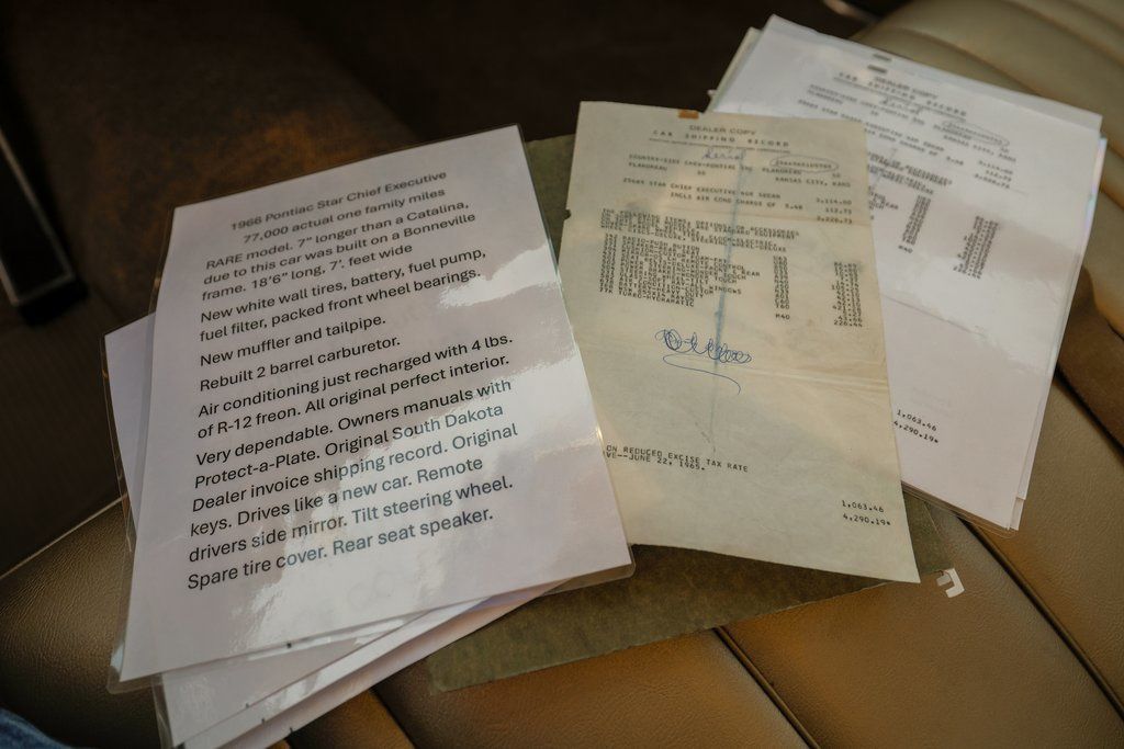 This exceptional 1966 Pontiac Star Chief Executive Sedan is available now at Frankman Motor Company in Sioux Falls South Dakota. A one-family-owned full-size luxury sedan built on the Bonneville frame making it 7 inches longer than the Catalina this Star Chief Executive represents the pinnacle of mid-1960s Pontiac luxury. With 77807 actual miles original documentation and remarkable preservation this is the kind of classic Pontiac that collectors spend years searching for.