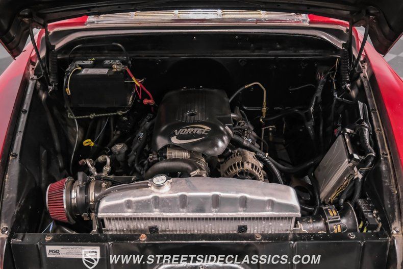 A modern 5.3L LS V8 Vortec engine paired with a 4-speed automatic transmission delivers strong power to the 10-bolt rear end. Long tube headers feed into a dual Thrush exhaust system for an awesome sound. The power disc brakes at all four corners provide excellent stopping ability, while power steering makes maneuvering effortless. An electronic cooling fan maintains optimal operating temperatures.
