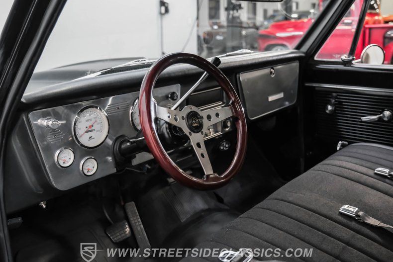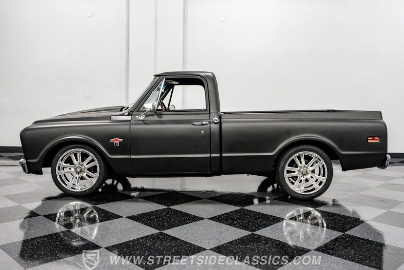 This 1968 Chevrolet C10 is a truck that embodies the raw spirit of classic American muscle with a modern twist. Cloaked in a sleek satin black wrap, this C10 is more than just a vehicle, it's a statement of style, power, and individuality. Imagine cruising down the open road, turning heads with its lowered stance and aggressive 20-inch US Mags, all while enjoying the nostalgic rumble of a V8 engine. This is a truck for those who appreciate heritage and performance, wrapped into one compelling package.