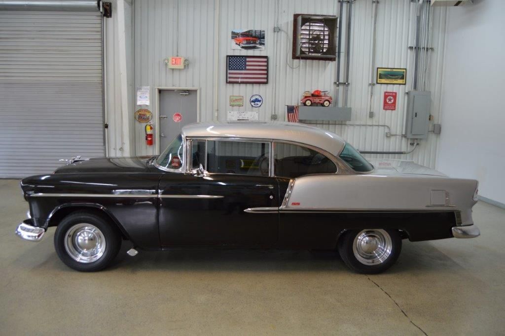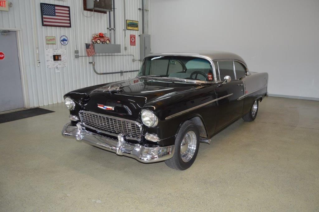 This is a very nice 1955 Bel Air Hardtop for sale. The two-toned black and silver paint is blended very well over a slick body with reconditioned moldings. All of the chrome and trim looks great!