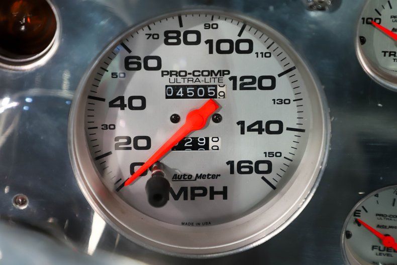 UNDERSIDE: Complete custom suspension front to back. It has a custom subframe with tubular control arms, Ridetech adjustable coilover gas shocks swaybar and a rack & pinion steering. Frame connectors tie the front and back together to help prevent body twist. In back is a 4 link system with tubular control arms and Ridetech coilover adjustable gas shocks. Stopping power is provided with a Wilwood brake system that has drilled and slotted disc at all four wheels, 6 piston calipers in front, 4 piston in back. The fat exhaust with Flowmaster mufflers does make it all the way out the back. It has a custom fuel system, the tank has been modified with a sump, braided lines run all the way to the front, it has an Aeromotive fuel pump and filter. Looking up at the motor it has an extra capacity Melodin oil pan and a high torque starter. The aluminum ribbed flywheel cover matches the oil pan on the Turbo 350 automatic which has a performance build. A Gear Vendors overdrive has been installed which makes for cruising at highway speeds much more comfortable. A custom driveshaft was cut and connects to a heavy duty 9 inch rear end with the backbone brace, aluminum center section and of course posi gears.