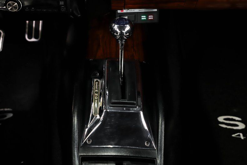INTERIOR: The first thing you notice is the custom handmade 2 tone upholstery done in genuine leather. The sport seats are firm and supportive. The door panels, armrests, handles and window cranks are reproduction. Down on the floor is fresh carpet and embroidered SS 427 mats. Up above the headliner, visors and mirror have been replaced. In front of me is a new dash pad, the glove box area is mint. Right in front of me is a completely custom instrument panel with Sport Comp gauges and a polished billet instrument bezel. It also has a chrome tilt column with a Grant sport wheel. The factory center console has been retrofitted with a B&M slapstick shifter. There is a JVC stereo with kick panel speakers and 6x9s in back.