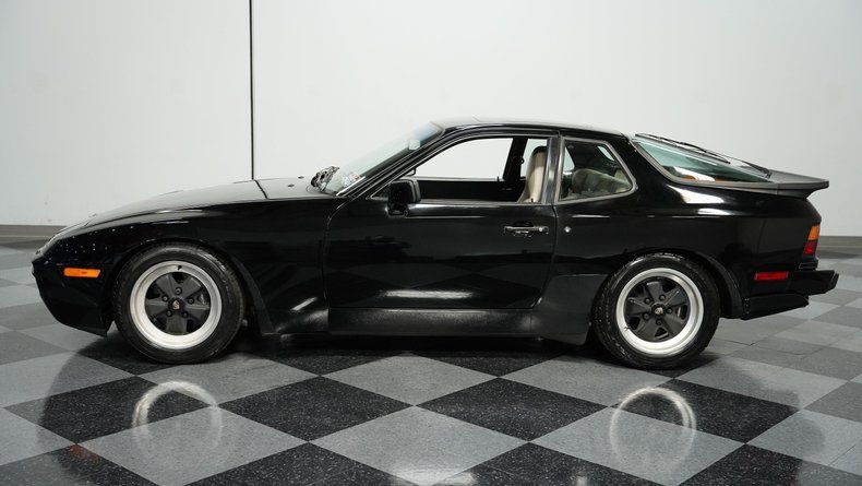 Racing lineage flows through the angular lines of this 1986 Porsche 944 Turbo, marking the first production year when Porsche added forced induction to this platform. Finished in black, the sleek body moves through air with German precision. The flush-mounted headlights, rear spoiler, and clean body lines give away nothing about the performance capability waiting for the next driver. The 16-inch factory wheels with 205/55R16 front and 225/50R16 rear tires plant this machine firmly on the asphalt, ready for high-speed runs or weekend cruises.