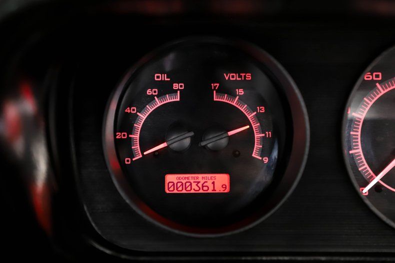 INTERIOR: Done right! They started by gutting the interior and applying Dynomat sound deadener. Then all the wiring was replaced with an American Autowire wiring system. The custom TMI seats are comfortable and supportive and have red accent stitching to compliment the exterior. The front buckets recline and it has seatbelts front and back. The door and side panels were replaced including the armrests, levers, and handles. The dash was neatly painted gloss black and the gauges upgraded to Dakota Digital (with a switch on the dash to flip options). The factory climate control was retrofitted to operate the air conditioning when on "de-ice" and "cooler". A digital stereo fits in the factory hole and kick panel speakers were integrated. It also has an Ididit tilt column with a cushion grip wheel. The original style center console now has charging ports and an armrest with additional storage and cup holders. The carpeting, sun visors, and rearview mirror were all replaced. The frame for the power top was also restored.