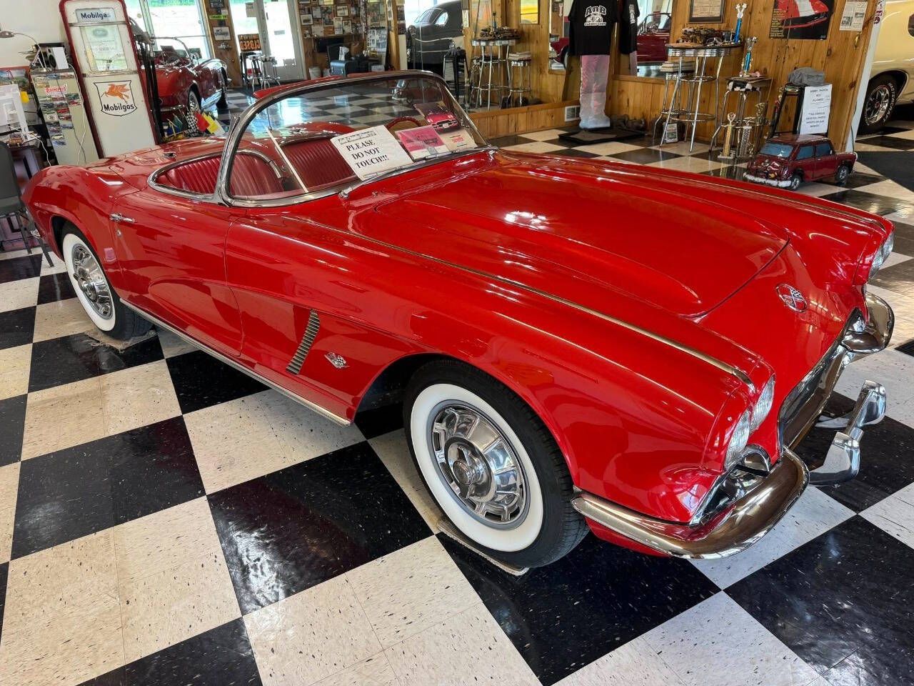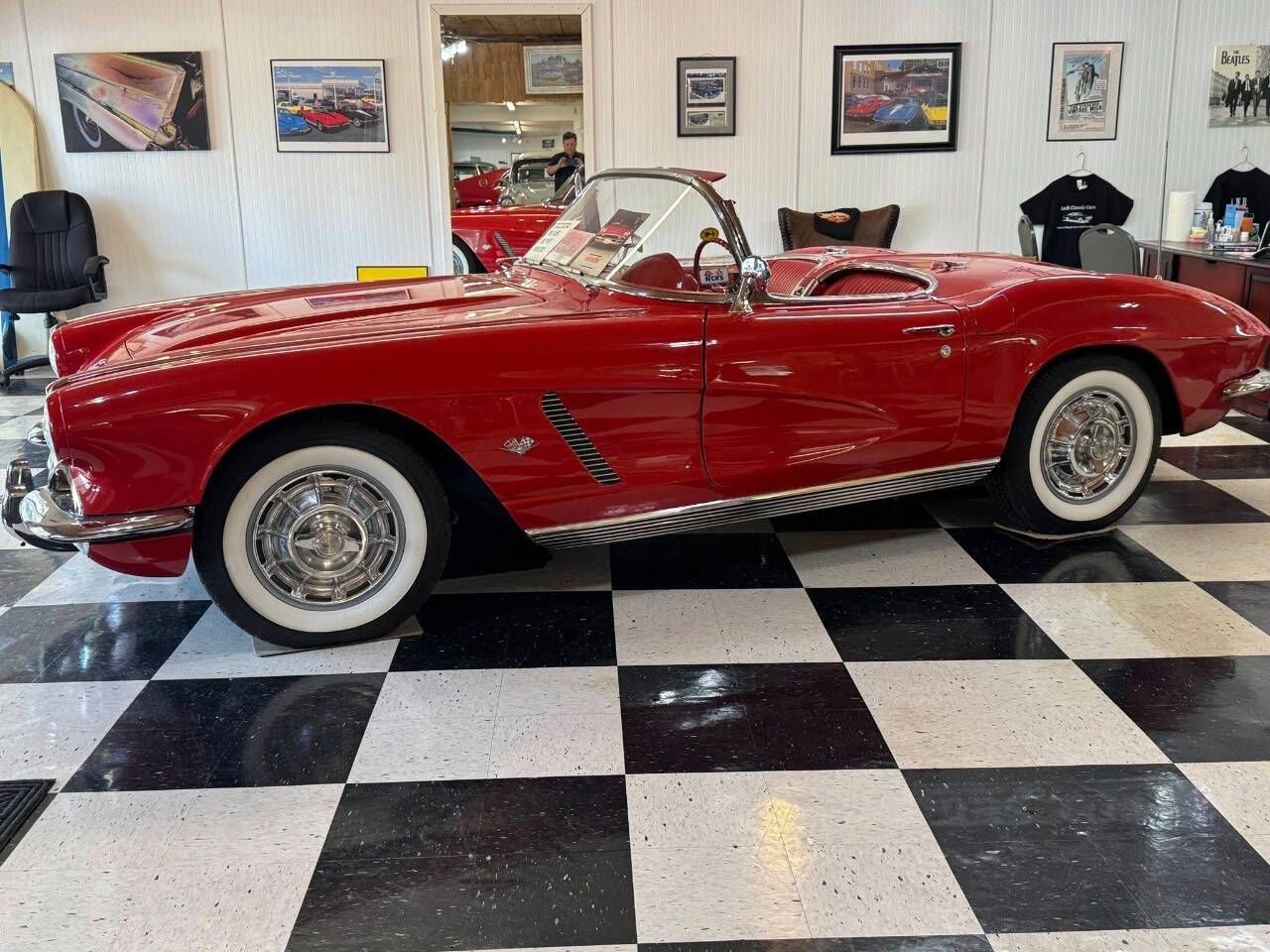 Just Arrived!! 1962 Corvette! Driving video > https://youtu.be/W-2v9M3L4O4?si=_PtkHvGvqwYmbo9P video walkaround > https://youtu.be/W46yA2CBpwg?si=5hfcNsMb5Nv044UE This Iconic American Classic 1962 Corvette convertible is absolute stunning inside and out with no apologies!! Walk all around the exterior of this Roman Red corvette you will see that the attention to detail and the fit and the finish work to be most likely better than it was when brand new. The Chrome, bumpers , handles ,and mirrors all have a deep shine. Beautiful Roman Red paint Red interior 327 cu in. Matching # 300hp casting # 3782870 Muncie 4 speed Factory shifter Factory brakes/ suspension New Black Soft top Factory exhaust Solid frame Factory wheel covers Radial white wall tires The paint that adorns this Corvette has a beautiful luster. This Classic is as American as Apple Pie. '62 being the Last year body style for this Corvette and it is in top quality and show condition!! There are no cracks, not one stone chip or any wave showing in the exterior. The red interior is like perfection as well. This 1962 corvette has a correct Matching # block and correct date coded 327 300hp engine and a factory 4 speed manual transmission. The Wide white wall tires are brand new. The black soft top is new also. NO HARD TOP. Both the Wonder bar radio and RPM factory gauges are in excellent condition. The red bucket seats are a thing of beauty to sit in or show. No rips no tears, no cracks. Send one into a restoration shop and be prepared today to spend $150k to get one to look this great!! This Vette is ready to show or go. Title reads actual miles.