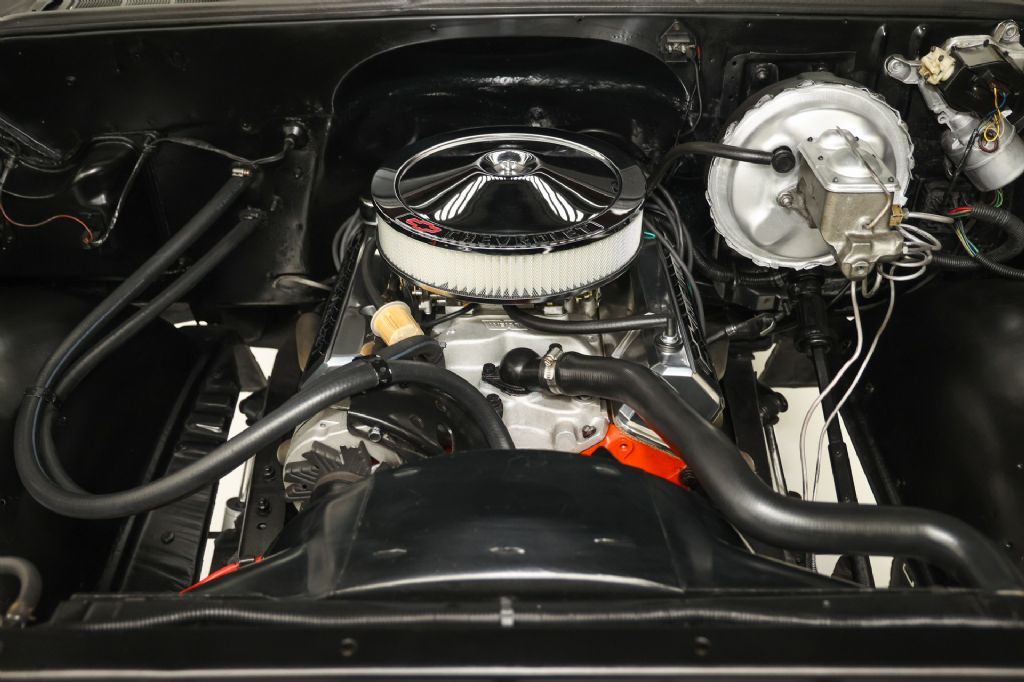 An extensive restoration was completed on this black 1976 Chevrolet K10 Silverado 4x4 short bed pickup. The engine and truck have only around 1001 miles since finished. This rock solid, Silverado K10 pickup was sanded down to bare metal and any metal that was not good enough was replaced, before being professionally painted in mirror finish black a red Chevrolet pinstripe accent. Under the hood is a show quality engine compartment showcasing a fresh 350 engine topped off with chrome Chevrolet valve covers, nicely paired with 4-speed transmission, power steering and power disc brakes. The black interior with match the outside perfectly and have a center buddy seat that folds down for storage and beverages. The dash is in excellent shape with newer clear crisp instrumentation and the odometer shown only 1001 miles. The original Chevrolet Delco radio is still intact and a Bluetooth stereo nicely concealed in the glove box. This beautiful truck is riding high on ProComp aluminum rims and Hankook DynaPro All-Terrain radials for that amazing 4x4 off road look.