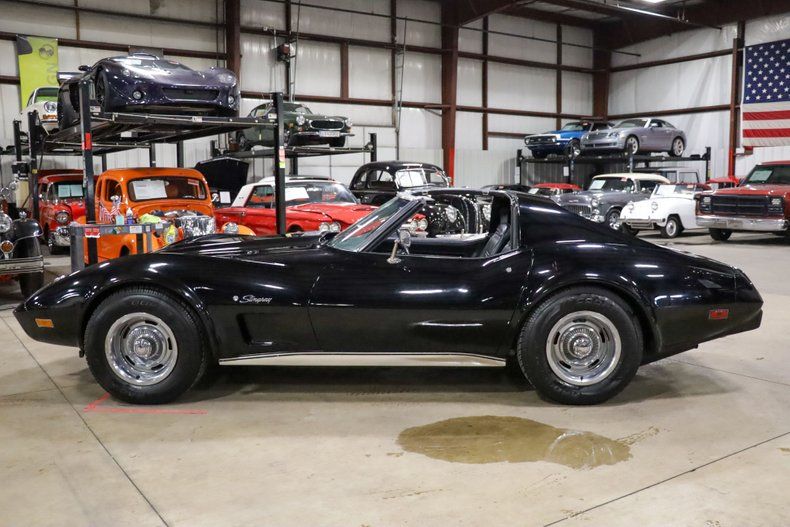 Offered here is an example that belongs to an exclusive cohort of 1975 Corvettes. Those familiar with the color options for the 1975 lineup will know that black was not an available option. Chevrolet produced a very limited quantity of Corvettes that were sent to dealers just wearing primer which allowed for the creation of brand new Corvettes finished in black. This uniqueness is denoted by the special paint code tag as shown in the pictures. This L-48 corvette features T-tops that remove and go back on the car easily and when removed make for an exciting open-top driving experience. Additional features include power steering, power brakes, and working air conditioning.