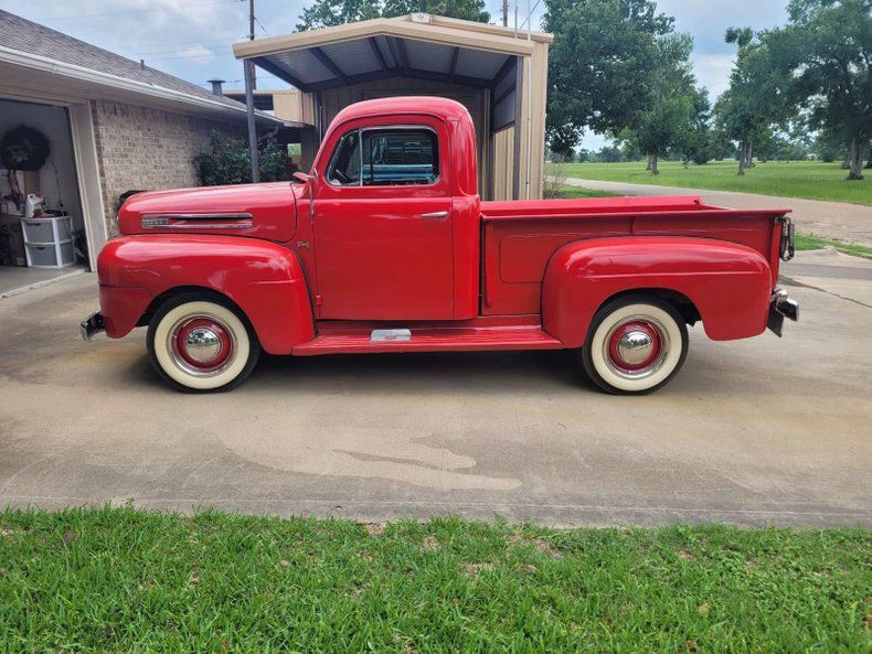 This 1949 Ford F1 Regular Cab is a fully restored deluxe model that has been meticulously rebuilt from the frame up. Every detail, from the sandblasted and painted frame to the professionally done bodywork and striking red exterior, showcases the quality of the restoration. The flathead V8 engine has been fully rebuilt, and the truck has only been driven approximately 1,000 miles since completion. The interior is finished in brown, providing a classic contrast to the vibrant exterior. This is an exceptional example of Ford's legendary post-war pickups, ready to be shown, driven, and enjoyed.