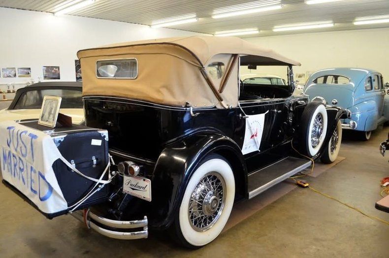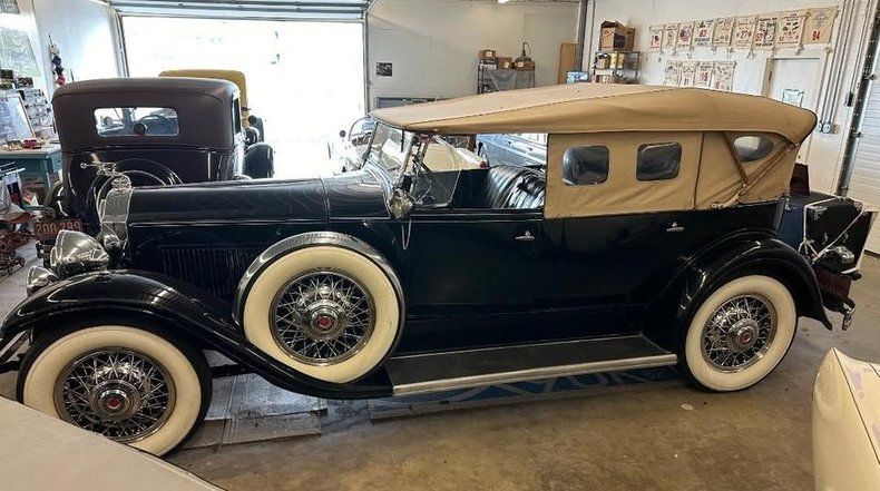 This 1931 Packard 833 5-Passenger Phaeton is a stunning representation of pre-war luxury. Restored in the 1970s, it retains its elegant black exterior with cream pinstripes and a rich green interior. The straight-8 engine is smooth, silent, and full of torque, with a recent refresh and proper detailing including correct engine enamel and new hardware. It features an original canvas top with side curtains, a full trunk rack, and removable top saddles. While some interior wear is visible, the car is mechanically sound and ready to tour. The 3-speed manual shifts cleanly, the brakes are effective, and it cruises comfortably at 50 MPH. This Packard has been lovingly maintained and enjoyed, making it a superb choice for vintage touring and worry-free enjoyment.