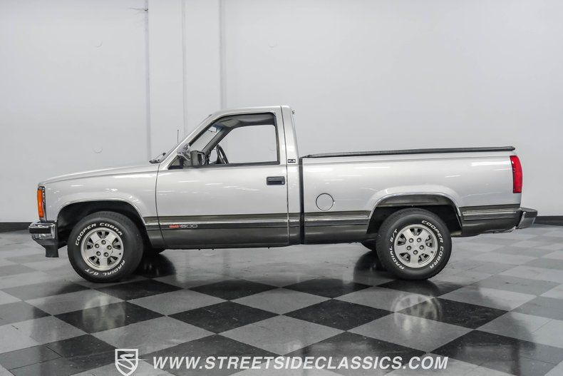 Fully repainted and looking sharp, this 1992 GMC Sierra 1500 SLE comes styled in clean silver with gray accents that give it a refined appearance. The regular cab, short bed configuration creates ideal proportions for both work and play. From the front, the GMC badging sits prominently on the grille, while the headlights and chrome bumper maintain their original appeal. For added utility, this Sierra features a durable plastic bed liner and a functional roll-up bed cover to protect cargo from the elements. Factory 15-inch wheels maintain the stock look, and Cooper 235/70R15 tires offer good traction on various road surfaces.