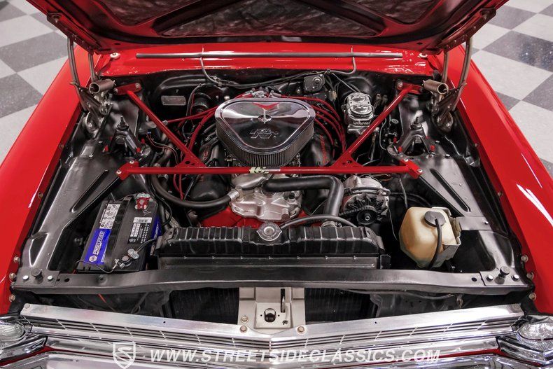 One of only about 2,900 V8 wagons produced in the final year of Nova wagon production, this 1967 Chevrolet Nova Chevy II Wagon wears a bright red finish that's been given a complete repaint. The staggered stance comes from a lowering kit that gives this wagon a more aggressive profile. American Racing five-star aluminum wheels measure 15 inches front and rear, wrapped in P155/80R15 front tires and P215/70R15 rear tires. Tinted windows complement the exterior, while the clean brightwork maintains the classic lines throughout.