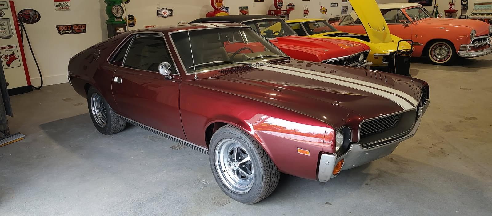 1969 American Motors AMX 390. Upgraded with a 5 Speed Tremec. New Burgundy Matallic Paint. Working Factory Air conditioning. Power Steering. Power Brakes. Front Disc Brakes. Bucket Seats Excellent Vinyl Interior. Terry 952-451-2104. $47250. Video. https://youtu.be/ayhGo6spmik?si=PeIpTEpui66Nl3N