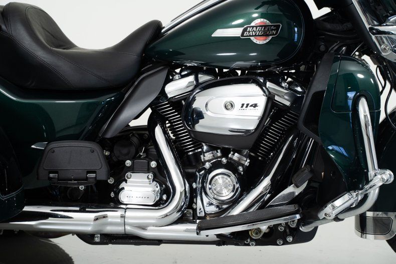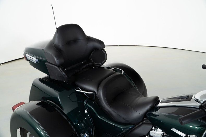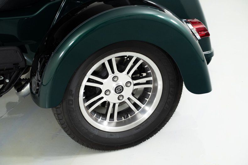 Finished in Alpine Green and Black with black leather seats, this Harley-Davidson trike rides on aluminum wheels wrapped in Dunlop radial tires. With only 2,371 original miles from its single owner, it's barely broken in and ready for the road.