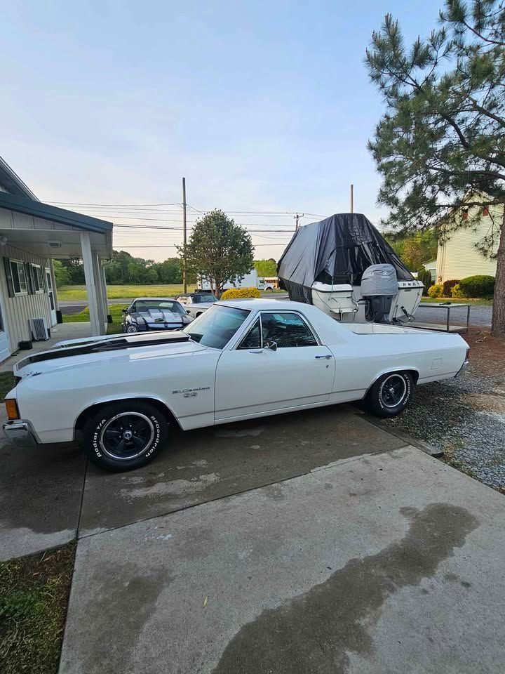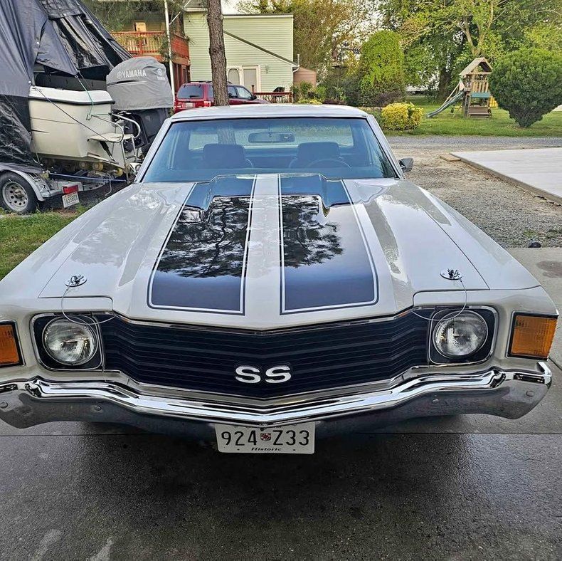 This 1972 Chevrolet El Camino SS is a professionally restored, high-performance muscle truck with only 1,200 miles since completion. The original matching numbers 402 big block and Turbo 400 transmission were fully rebuilt to factory specs. The body and frame were meticulously refinished, and the entire suspension system was upgraded for modern handling and ride quality. It features factory A/C, bucket seats, and a tilt wheel, blending vintage SS style with comfort. The stainless exhaust with Magnaflow mufflers gives it a throaty, aggressive sound, while the lowered stance enhances both look and performance.