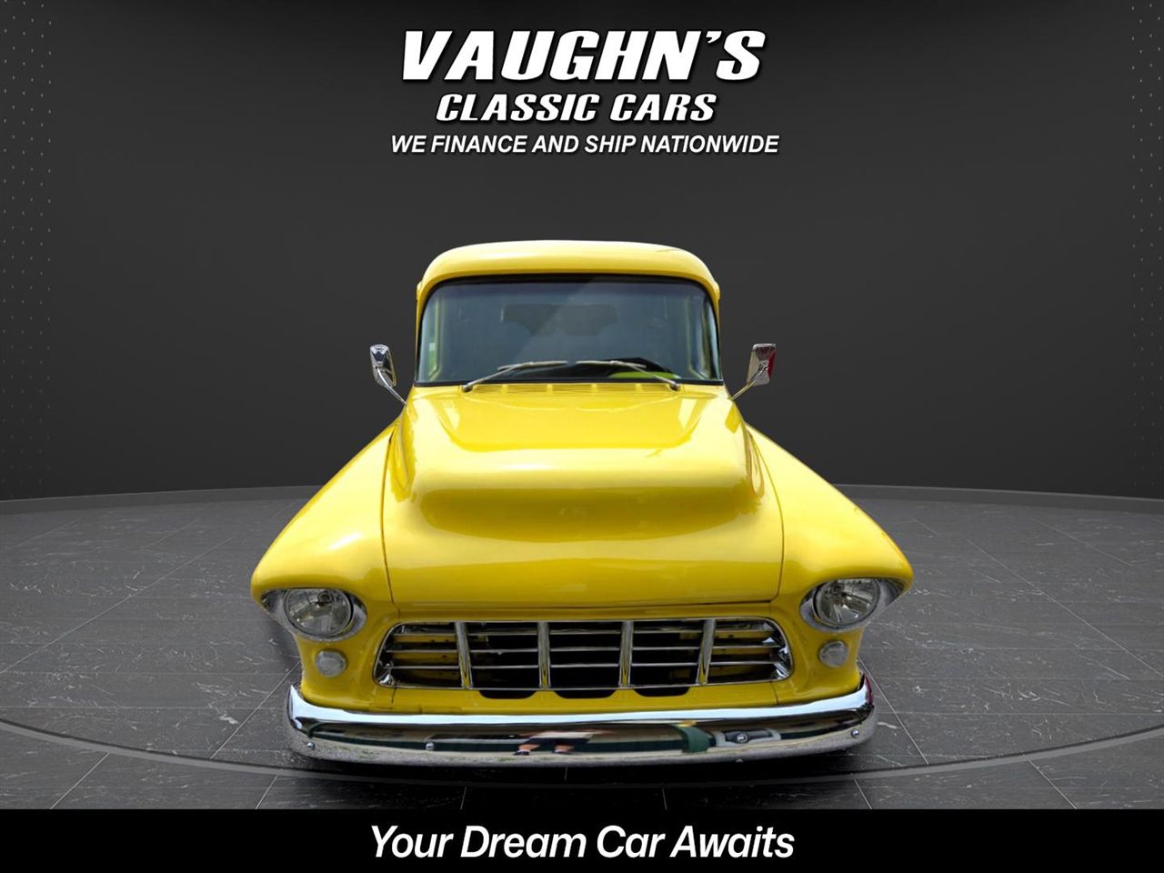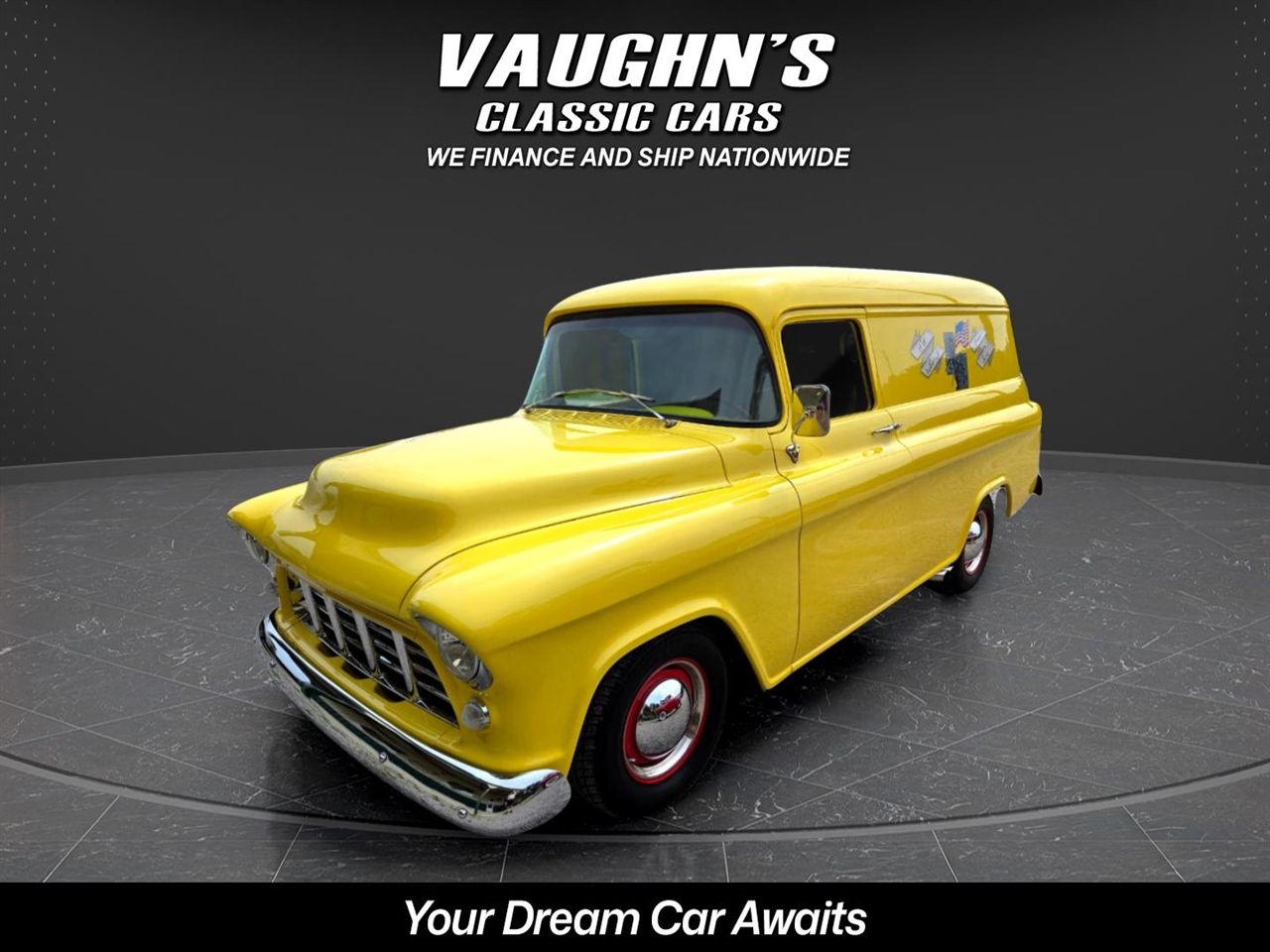 WOW! Check out this awesome 1956 Chevy 3100 panel truck with tons of custom touches. Including air ride suspension, vintage heat and air, side exit exhaust, power steering and brakes, many custom body modifications and Frenching, excellent custom paint on a rock-solid body, custom gauges, seats and complete custom stitched interior with wood floor. The truck features a 5.8L 351 V8 engine, automatic, and the best of everything included in this build. We can ship it to you nationwide and we have great financing option if needed. Call us at 618 336 5210 to discuss a deal. Visit Vaughns Classic Cars online at vaughnsclassiccars.com to see more pictures of this vehicle or call us at 618-336-5210 today to schedule your test drive.