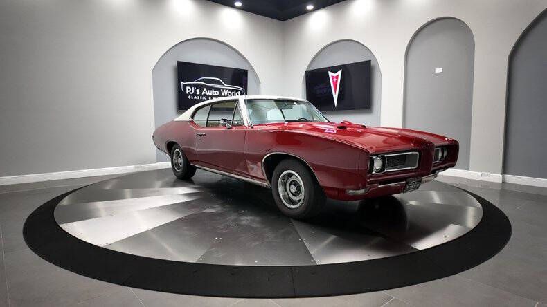PJ's Auto World is pleased to offer this 1968 Pontiac GTO for Sale. Numbers Matching 400 Cu In (WT engine block factory rated at 360 horsepower), Quadrajet 4 barrel carburetor, dual exhaust, Muncie 4 speed manual transmission, power steering, front power disc brakes, 14 Pontiac Rally Wheels with BF Goodrich red line radial tires, beautiful Code R Solar Red exterior, painted-on pin stripe, scooped hood, hood mount tachometer, white vinyl top, chrome mirrors, Code 224 Parchment bucket seat interior, center console, 3 spoke wood steering wheel, tilt steering column, detailed dash and instruments, in-dash tachometer, working factory AM radio and hidden Custom Autosound remote radio tuner, day night mirror, embroidered floor mats. This is a quality car that drives amazing and guaranteed to put a smile on your face every time you run this 4-Speed Muscle Car through the gears! This Pontiac is ready to be driven and enjoyed! With over 45 years of dedicated service to the Collector Car Community, our team is eager to answer any questions you may have. Finance options available and worldwide shipping can easily be arranged. Interesting trade-ins will also be considered.