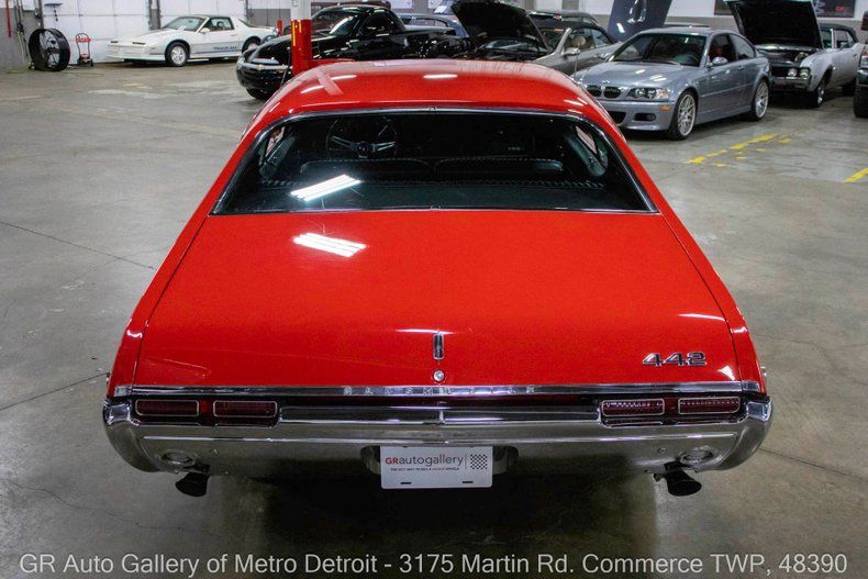 GR Auto Gallery is pleased to present this rare and highly desirable, 1968 Oldsmobile 442 W-30 Holiday Coupe for your consideration. Finished in a bold Scarlet Red exterior over an all-original Black interior, with factory bench seat. This 442 is powered by its numbers-matching 400 cubic inch V8, mated to its factory numbers matching TH400 automatic transmission (photos of the engine block, head, transmission, and transmission tag showing matching numbers can be found in our photos). This is a true W-30 optioned vehicle, which was an awesome upgrade on these 442s; including the ram air system, high-lift camshaft, W30 cylinder heads with larger valves and better flow, Rochester quadrajet 4bbl carb with unique tuning for the W-30 setup, high-performance distributor and ignition timing, red inner fender wells, heavy-duty suspension components, performance dual exhaust with special mufflers, forced air induction hood setup, unique W-30 badging, and none of the W-30 cars had A/C.) Only about 1,518 W-30 cars were built in 1968, making it a much more rare and collectible model today. This example is equipped with a G80 anti-spin rear axle, A01 tinted glass, N47 power steering, and the rare automatic transmission. Additional features include chrome front and rear bumpers, a sport wood three-spoke steering wheel, and numerous original owner's manuals. This car has been meticulously cared for and was recently inspected and authenticated by Stephen Minorie, an Oldsmobile and W-30 expert (photos of the report in the listing). Drive this one out of our showroom or have us assist with shipping it to you anywhere in the United States! Don't hesitate to call us with any questions or for more information.