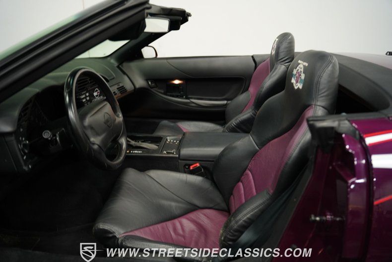 Racing royalty takes shape in just 527 examples, and this 1995 Chevrolet Corvette Indy 500 Pace Car carries the exclusive Z4Z designation that separates it from every other Corvette on the street. Dark Purple Metallic paint covers every surface while Arctic White accents race across the bodywork like racing stripes born from the Indianapolis Motor Speedway itself. The white vinyl convertible top drops away for track-day thrills, and 17" wheels at all corners wear 275/40ZR17 rubber that was sized for serious grip. Pace car graphics and Corvette windshield stickers announce this machine's racing credentials, while the luggage rack adds practical storage without compromising the speedway-inspired aesthetics.