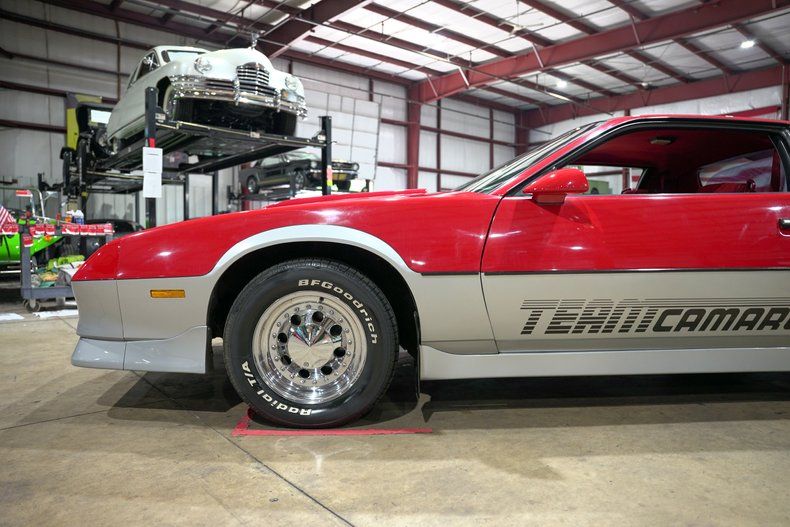 GR Auto Gallery is excited to present this 1986 Chevrolet Camaro RS, finished in a bold Bright Red with Silver lower accents and proudly wearing "Team Camaro" decals down the flanks. This RS isn't about brute horsepower, it's about the era it came from. The stance, the stripes, the chrome 15-inch wheels, everything about it says 1980s cool. It's a time capsule that reminds you why Camaros were so popular in the first place.