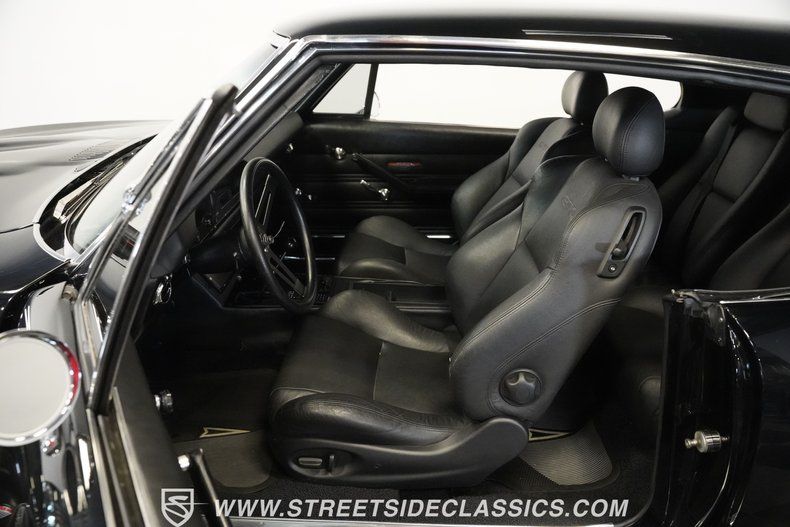 Underneath the hood lies the soul of the beast: a Pontiac XW code 400 V8 engine that has been bored to 461 cubic inches for enhanced for performance. The detailed engine bay is highlighted by factory-style chrome valve covers and a chrome open-element air cleaner. Power is sent to the rear wheels via a Borg-Warner T-10 4-speed manual transmission. Exhaust rumbles back through an X-pipe and dual Quiet Flow mufflers. Handling capabilities have been greatly improved with Hotchkis lowering springs, Hotchkis rear sway bar and trailing arms, a beefy front sway bar and power assisted disc brakes with drilled and slotted rotors on all four corners.
