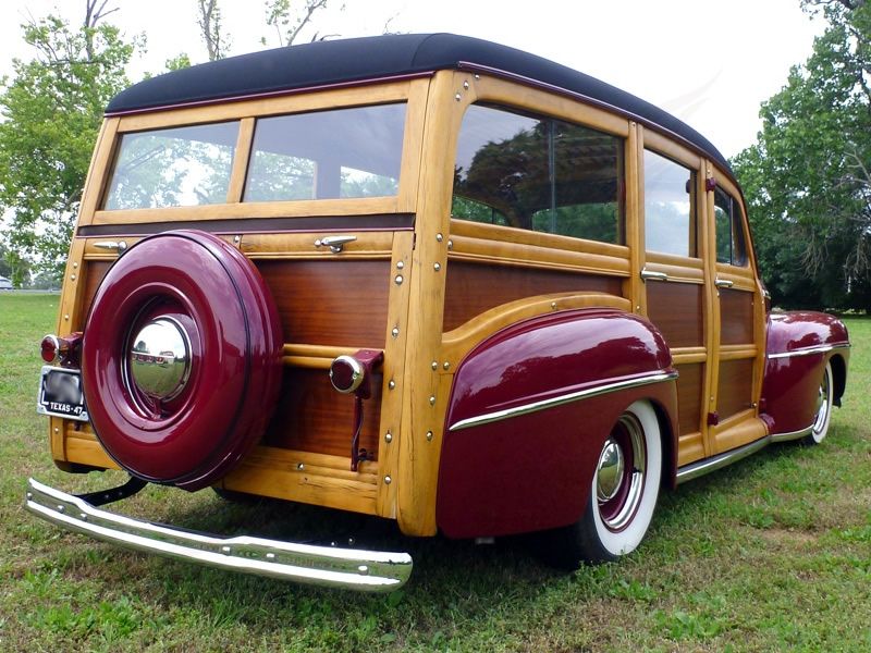 The first Woodie (or Woody) Station Wagons were designed to be utilitarian in that their primary purpose was to haul commercial goods. Ford recognized this potential and in 1929 was the first of the big 3 manufacturers to release their own. A lot of the Woodies were created by coachbuilders and 3rd party companies but Ford ended up purchasing 400,000 acres of land for the soul purpose of making a sawmill to form the body panels for vehicles. A large shift occurred in the mid 30's with the implementation of things like glass windows versus side curtains and a swing out rear windshield. Suddenly what was introduced as a vehicle for workers was now a limited production specialty car for the luxury class. These wood bodied wagons with their expert carpentry were now a sign of wealth. Today Woodie's are highly collectable and it is easy to spot why. With a largely wood construction it is amazing to see ones still around that haven't rotted away over time so the number still on the road is significantly less than there were originally. This very nice 1947 Super Deluxe Woodie is in beautiful condition. These cars truly are like a work of art. The steel portions are painted a Dark Red Burgundy and pair perfectly with the light and dark tones of the wood. The entire body is in great shape and believe it or not it is the original wood paneling. That is a testament to how well the car has been cared for its entire life. Since new, people had the foresight to maintain and protect that paneling for almost 80 years. The chrome and stainless is in excellent shape throughout and has a great shine. The glass is all good and it has a two piece windshield and the sliding rear glass. The rear hatch opens in two sections and it has the rear mounted spare with painted to match spare cover and Ford center cap. The wheels are the original style and painted to match. They are fitted with Ford center caps, chrome beauty rings and wide White wall tires.