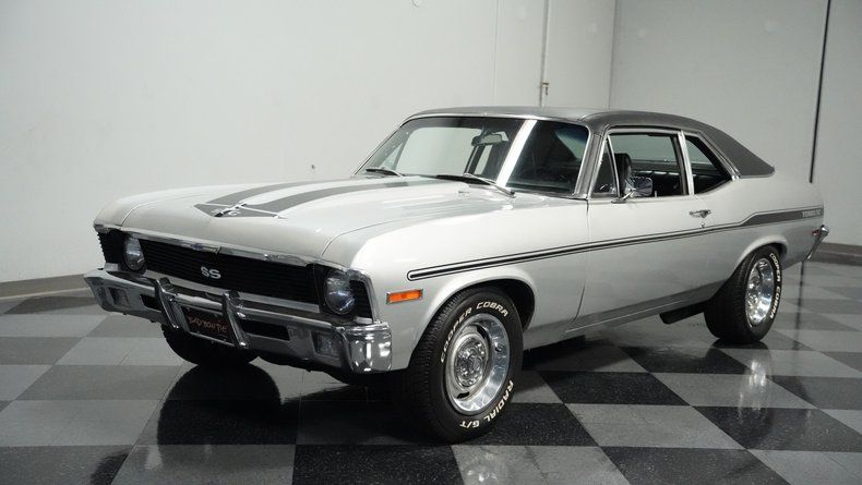 Swapped with modern muscle and wrapped in Silver Metallic paint, this 1970 Chevrolet Nova SS Yenko Tribute LS Restomod offers serious street credentials to any driveway. Black racing stripes slice across the bodywork while 15" Rally Wheels anchor each corner with 215/70R15 front and 255/60R15 rear rubber. Chrome bumpers frame the front and rear, and the cowl hood adds an aggressive stance. Dual exhaust exits complete the exterior package on this two-door coupe.
