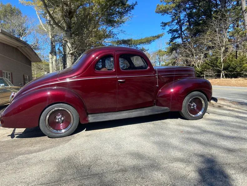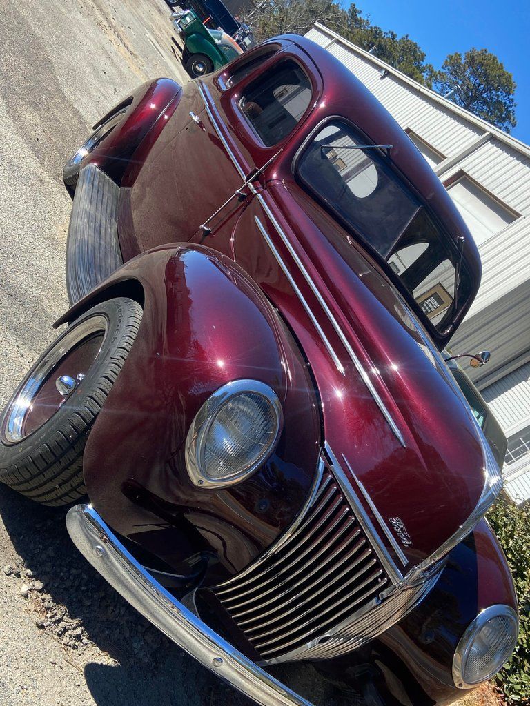 This stunning 1939 Ford Deluxe is a show-quality, all-steel custom with only 10 miles on a brand-new build. Under the hood is a fresh 302 cubic inch V8 paired with a smooth C4 transmission. Loaded with modern upgrades, including power disc brakes, halogen headlights, MagnaFlow exhaust, and a digital gauge cluster, this Ford blends timeless style with modern performance. The custom distressed walnut leather interior is accented with a Banjo wood steering wheel and ivory headliner, while the 17" steelies add to its classic hot rod presence. With all-new tinted glass and a high-end Kenwood stereo, this '39 Ford is ready for weekend drives or show display.