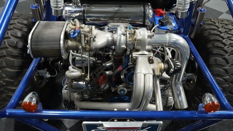 Conquer any trail, ford any stream with this 1970 Volkswagen Rail Buggy Turbo, your ticket to unlimited weekend adventures. The Blue Diamond Tricoat finish looks right at home against mountain backdrops or desert landscapes. The exposed tubular frame construction screams "off-road warrior" from every angle. When the sun sets on your expedition, LED brake lights and powerful spotlights illuminate your path. The 15" wheels carry 30.0/7.0-15 front tires for precision control while massive 36x15.50R15LT rear tires claw through mud, sand, and rock with savage determination.