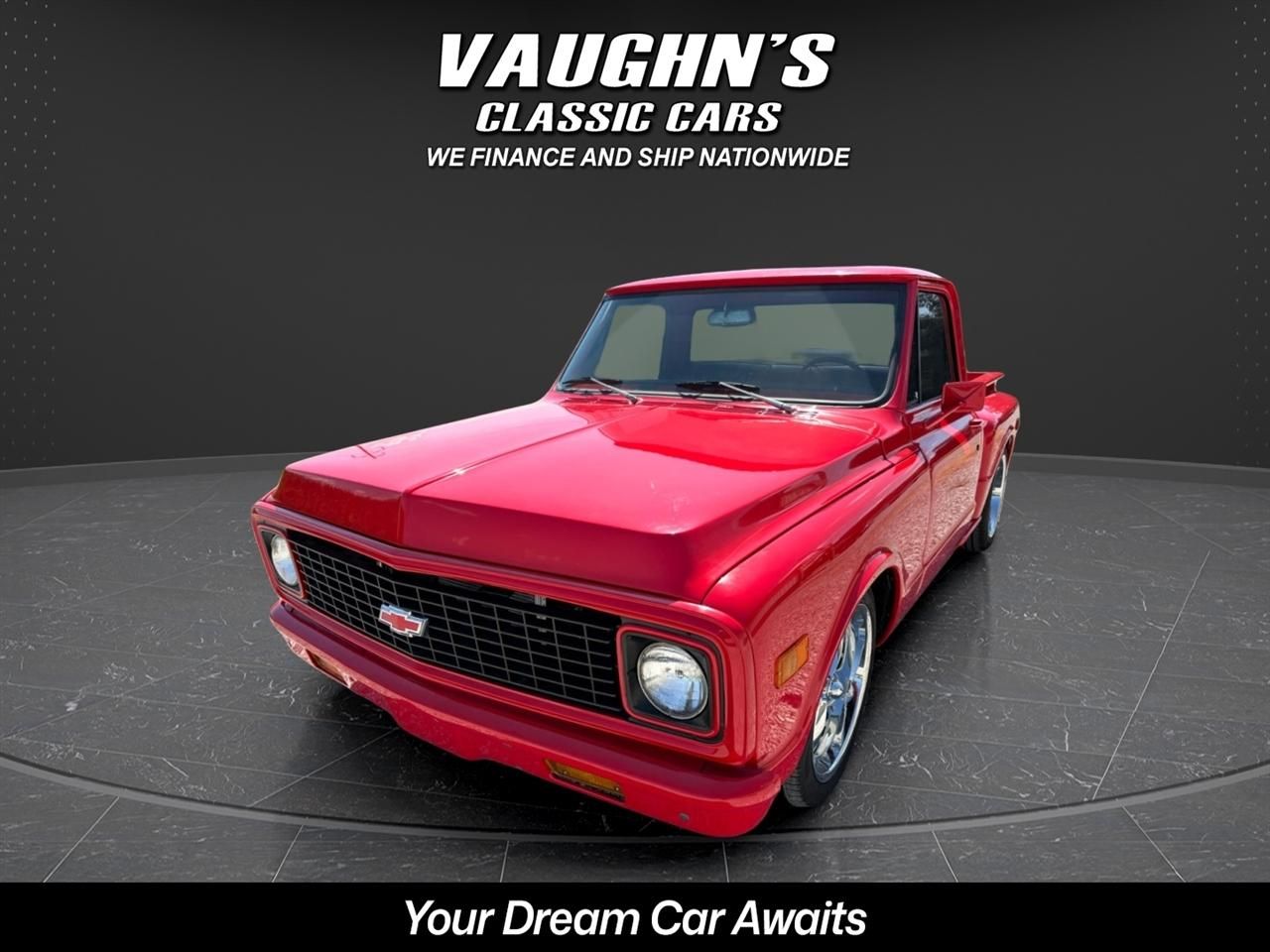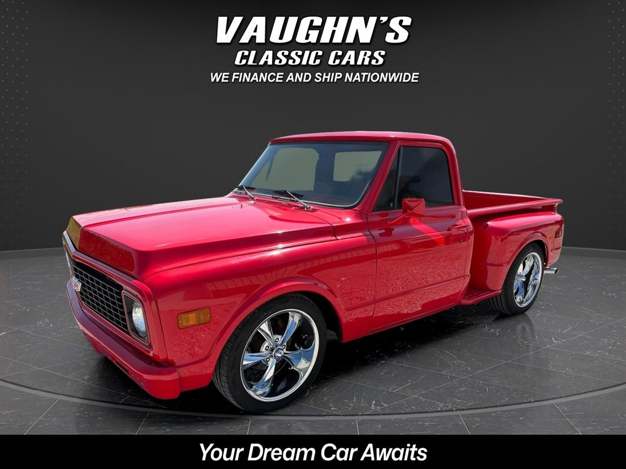 Check out this awesome custom 1971 C10 step side pickup with beautiful paint on a straight and solid body, many custom touches on the truck, comfortable reupholstered seat, new Vintage air, strong running Corvette 350 and 4 speed, power steering and power disk brakes, new custom wheels and tires, and sweet-sounding dual exhaust. This truck drives amazing and is very dependable. It turns all the heads too! Check with us for financing with only 10% down and we offer nationwide shipping! Visit Vaughns Classic Cars online at vaughnsclassiccars.com to see more pictures of this vehicle or call us at 618-336-5210 today to schedule your test drive.