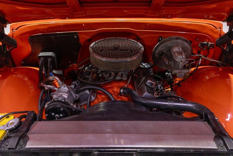This 1971 Chevrolet C10 Pro Touring Short Bed Pickup Truck is an absolutely gorgeous, modified pickup truck with fantastic features while maintaining a mostly stock look! Chevrolet's truck division began producing trucks in 1918 with two models, a half-ton and a one-ton. As the years progressed, Chevy trucks rose immensely in popularity as the public recognized the utilitarian value of light duty trucks. Simultaneously as demand for Chevrolet's light duty trucks rose, so did customers' desire for their trucks to be more luxurious, more plush, and more fully featured as they had become accustomed to in their cars and while they were using trucks as daily transportation. Over the next few decades, the GM marque began offering higher trim levels in its light duty pickup trucks largely due to customer demand. 1971 was a banner year for Chevrolet as it became the first automaker to sell over 3 million cars and trucks, with Chevy's trucks accounting for nearly one quarter of the 3+ million vehicles sold. Additionally, the nearly 700,000 trucks Chevrolet sold in 1971 was also a record for the General Motors division. Stylistically, the light duty trucks in underwent a noticeable redesign the '71. New grille styling featured an updated egg-crate look comprised of 5 horizontal blades with 15 intersecting vertical blades that gave the trucks a more "macho" look up front. Furthermore, 1971 marked the first time that disc brakes came as standard equipment for light duty Chevy Trucks which greatly improved stopping power and braking performance and signaled an industry-wide shift to disc brakes that would become commonplace through today. More recently, Chevy trucks have become a favorite platform for restorers to build the classic trucks as Pro Touring or Restomod likely due to their timeless design along with the substantial availability of parts and upgrades. With additional creature comforts and a vast array of styling add-ons, these Pro-Touring Chevy Pickups are even more comfortable and stylish, and are an absolute joy to take on longer cruises and trips. This particular C10 Pro Touring Pickup Truck comes to us most recently from southern-based collectors who clearly took great care of this truck while under their stewardship. Powering this '71 Chevy 1/2 Ton Pickup is a 350 cubic inch V8 upgraded with an upgraded Edelbrock single 4 barrel carburetor. Exhaust exits the 350 powerplant via a set of tubular headers and out through a dual exhaust system complete with XLerator Mufflers and chrome tipped tailpipes, that together create a terrific throaty sound. The 350 Chevy V8 is backed by a TH350 Automatic transmission that makes this Pro Touring Pickup an easy truck for anybody to drive to the local car show or just take on an afternoon cruise. This 1971 Chevy C10 Pickup is absolutely loaded with superb options. With power front disc brakes, bringing this gorgeous pickup to a complete stop is easy especially compared to stock manual drum brakes. Power steering is another wonderful addition on this tastefully modified Chevrolet since the overall driving experience is much improved and squeezing into a tight parking space is a total breeze. Further helping with parking efforts are dual chrome outside mirrors so that you can better see what's along side of you. Riding on a set of 20 inch U. S. Mags Wheels, with 245/45R20 radial tires up front and 275/45R20 radials in the rear, this '71 C10 has a great look and even better ride! The chrome and brightwork around the exterior of this truck looks great as well, most of which looks to have been recently replaced. The steel Fleetside pickup box and tailgate are in such great shape too that you probably won't want to haul gravel in in. The all steel body has been completely repainted in Hugger Orange paint that completes the exterior look of this fantastic classic pickup truck. The interior of this 1971 Chevrolet C10 Pro Touring Short Bed Pickup Truck is an absolute stunner! The black leather molded bench seat looks to be brand new and is accented with black and white houndstooth cloth inserts. The deluxe woodgrain trimmed door panels, black carpeting, padded dash, and custom leather wrapped steering wheel are all in fantastic shape as well and elevate the interior appearance of this '70s classic pickup. The interior also features a couple of fantastic updates! You'll be able to stay cool even on the hottest summer days since this Chevy Pickup comes equipped with upgraded Air Conditioning. Additionally, you can listen to all of your tunes thanks to an upgraded AM/FM/CD/AUX/Bluetooth entertainment system. The factory-style instrumentation remains complete with a 100 MPH speedometer, battery gauge, temperature gauge, oil pressure gauge, and fuel gauge, and a column-mounted SunPro 8,000 RPM Super Tach II has been added as well. Whether you're buying your very first classic pickup truck or you're adding to your existing collection of classic cars and trucks, this 1971 Chevrolet C10 Pro Touring Short Bed Pickup Truck would make an excellent choice. Give Ellingson's a call today at 763-428-7337!