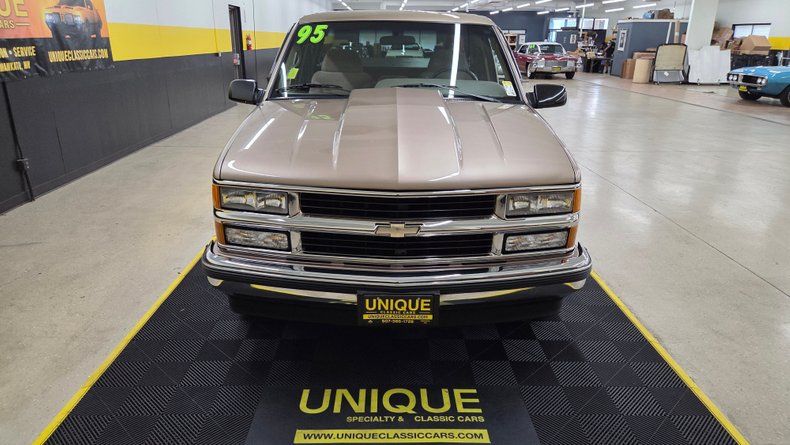 1995 Chevrolet Silverado extended cab, two-wheel-drive pickup truck with a clean Carfax with no accidents and an actual mileage of 106,850 miles. Finished in a distinctive light autumn wood metallic color with a beige custom cloth interior, this Silverado is a well-preserved example of a mid-90s classic pickup. The exterior remains in great condition with minimal imperfections, solid rockers, and rust-free wheel wells and cab corners. It rides on polished American Racing wheels fitted with Uni Royal radials, adding to its classic appeal. The truck features a cowl induction hood, chrome bumpers front and rear, and a bed liner with a roll-up vinyl tunnel cover for the bed storage area. The interior is equipped with a 60/40 split bench seat featuring a fold-down armrest, power windows, locks, lumbar support, cruise control, and a tilt steering column. An aftermarket JVC Bluetooth stereo system is installed. The cabin's condition is impressive, with no rips, tears, or significant wear on seats, dash, or headliner. The extended cab includes rear seating with fold-up storage capability. Under the hood, the truck runs a 5.7L V8 engine paired with a 1995 automatic transmission featuring overdrive. The engine bay is clean and well-maintained, with power steering, power brakes, and a newer AC compressor ensuring comfort and drivability. The vehicle promises a smooth ride with good acceleration.