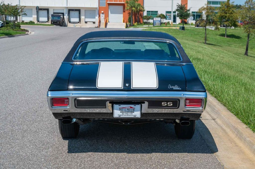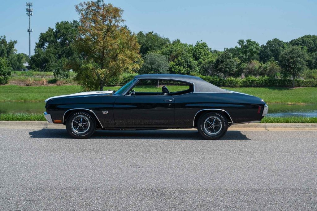 1970 Chevrolet Chevelle SS LS6 Tribute, Frame-Off Restored, Built to LS6 Specs, Long-Term Ownership This 1970 Chevrolet Chevelle SS LS6 Tribute is the result of a no-expense-spared, frame-off restoration, completed to the highest standards with only 22 miles since completion. The car has had the same owner since 1992, and this build was his personal passion project a chance to recreate the Chevelle he originally owned when these cars were new. Restored to LS6 specifications, this Chevelle features the legendary 454 Big Block V8 (512 engine block) mated to the M22 Rock Crusher 4-speed manual transmission and backed by a 3.73 Posi-Traction rear end. Every nut, bolt, and detail was carefully addressed, with a focus on authenticity, drivability, and show-level presentation. Long-Term Ownership & Authentic Colors, Owned by the same caretaker since 1992, Restored in its original factory colors per the trim tag, Color Code 19B, Tuxedo Black body with Black Vinyl Top, White SS stripes, Black Bucket Seat interior, and black vinyl roof, Classic and highly desirable color combination for a Chevelle SS Mechanical & Performance Highlights: 454 Big Block V8 512 Engine Block M22 Rock Crusher 4-Speed Manual Transmission Aluminum Flywheel, Ram Clutch, and Center Force Pressure Plate Baldwin Performance Custom Built 850 CFM Holley Carburetor GM Fast Ratio Power Steering Air Injection Smog System 4 Core Heavy Duty Copper-Brass Radiator Powder Coated Exhaust Manifolds Functional Cowl Induction Hood Tilt Steering Column Factory AM Radio with Original 8-Track Player Factory Tachometer & Clock Sport Steering Wheel with Comfort Grip Interior Courtesy Lighting 4-Speed Lock-Out Assembly R59 Battery Wiper Motor Disconnected to Protect Glass from any markings Legendary Vinyl Top & PUI Interior AMD Green Tint Glass Correct 14 SS Wheels with Goodyear Polyglas Tires (including spare & jack) BASF UNO Tuxedo Black Paint with 2400 Clear Coat with show-quality finish Modern Enhancements: Bluetooth Progression Distributor with Lock-Out Pin Bluetooth Memphis Extreme Audio System discreetly integrated This Chevelle underwent a full, nut-and-bolt, frame-off restoration, performed with no expense spared. The result is a car that captures the spirit and look of the 1970 LS6 Chevelle SS, while benefiting from meticulous craftsmanship and subtle modern updates. With its long-term ownership, original colors, and LS6-spec build, this 1970 Chevrolet Chevelle SS LS6 Tribute is a truly exceptional muscle car. Finished in the iconic Tuxedo Black with white stripes and black bucket seat interior, this Chevelle combines history, correctness, and performance in one of the most desirable packages ever produced by Chevrolet. With only 22 miles since completion, this is essentially a brand-new restoration ready for shows, cruising, or investment-grade collecting. While we do our best to provide the highest quality muscle cars with an honest and reliable description and realize the importance of transparency when selling vehicles. That being said, we have not built, modified, changed or personally owned this vehicle. Whether this vehicle is consigned or owned by Past & Present Motor Cars we do not know the vehicles complete history since new. We want to be clear and try to answer any questions our customers might have prior to purchasing. Additionally, we not only welcome but we encourage 3rd party independent inspections. Please inquire prior to purchase to make sure the advertised vehicle has not already been sold. We list our vehicles on multiple websites and a vehicle can sell at any time. If a customer chooses to purchase sight unseen (many of our customers choose this option) the customer accepts the vehicle AS IS and WHERE IS and understands we cannot address concerns after purchase. For this reason, it's important all concerns are addressed prior to purchase. We make every effort to present accurate and reliable information, but use of this information is voluntary, and should only be deemed reliable after an independent review of its accuracy, completeness, and timeliness. It is the sole responsibility of the customer to verify the existence of options, accessories and the vehicle condition before time of sale. Financing is Available with low rates and Vehicle Shipping is available from our Showroom to your Garage. A Classic Car Warranty is Available for Purchase from a 3rd Party. Please speak to our Sales Associate or Company Representative for more information. Our team is working and available anytime by Phone or Text for your convenience at 407-559-7759. Thank you for your interest!