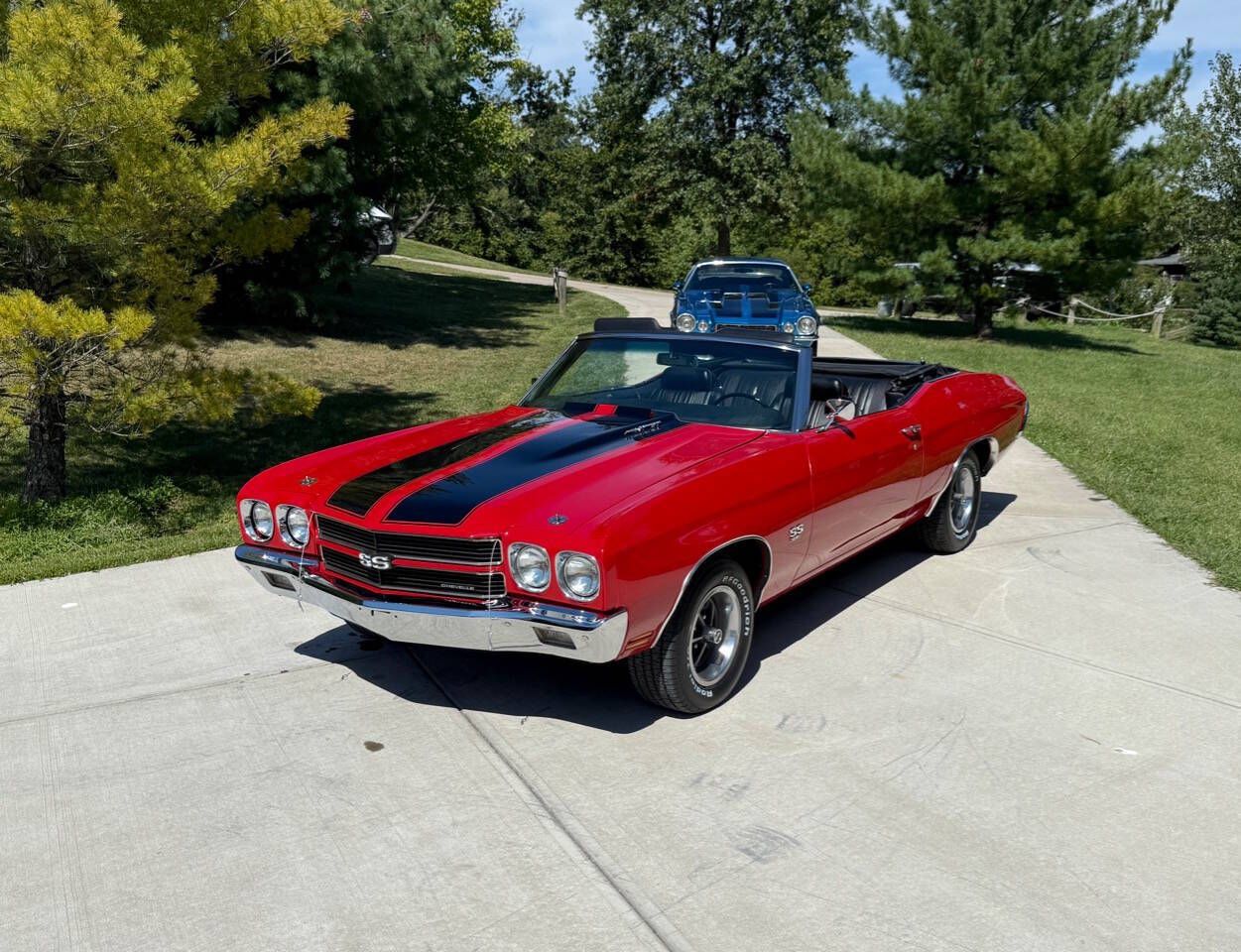 GORGEOUS 1970 CHEVELLE CONVERTIBLE SS FULLY REBUILT L78 396/375HP ENGINE 4SPD 12 BOLT POSI F41 PS PDB TILT TACH & GAUGES FUNCTIONAL COWL FLAPPER CLEAN UNDERSIDE SUPER SOLID & LASER STRAIGHT BODY VERY DESIRABLE CORRECT CODE 75 CRANBERRY RED CAR BEAUTIFUL SHOW QUALITY FACTORY CRANBERRY RED PAINT WITH NEW BLACK BUCKETS & CONSOLE INTERIOR AND NEW POWER TOP WITH GLASS BACK WINDOW VERY NICE RESTORATIONLOOK AT ALL THE DETAILED PICS LESS THAN 100 MILES ON COMPLETE HIGH QUALITY RESTORATION NICELY SORTED OUTRUNS AND DRIVES AND PERFORMS BEAUTIFULLY EXTREMELY STRAIGHT AND SOLID NICE METAL BODY.EXCELLENT GAPS AND FIT SUPER SOLID AND NICE FLOORS AND FRAME UNDERSIDE VERY CLEAN AND NICE NICE CLEAN SOLID TRUNKDETAILED WITH SPLATTER PAINT EASY STARTING, SMOOTH, RESPONSIVE AND STRONG FULLY REBUILT L78 396/375 ENGINE(NOM) NICELY DETAILED ENGINE AND ENGINE BAY MUNICE M-21 4SPD TRANSMISSION WITH HURST SHIFTER 12 BOLT POSI REAREND WITH 3.31 GEARS WITH F41 SUSPENSION WITH BOXED CONTROL ARMS AND SWAY BAR THE PAINT AND BODY ARE GORGEOUS AND STAND OUT AT ANY CRUISE-IN OR SHOW GREAT SETUP WITH ALL THE DESIRABLE OPTIONS AND FEATURES: DESIRABLE CODE 75 FACTORY CRANBERRY RED CONVERTIBLE SUPER SPORT WITH BLACK STRIPES SOLID & STRAIGHT CAR EXCELLENT FIT AND GAPS FULLY REBUILT SMOOTH RESPONSIVE AND STRONG L78 396/375HP MOTOR POWER FRONT DISC BRAKES POWER STEERING TACH AND GAUGES TILT WHEEL NEW CORRECT SS STEERING WHEEL..HORN WORK AS IT SHOULD NEW DASH BEZEL CRISP CLEAN GAUGES CORRECT FACTORY RADIO NEW CRISP BLACK BUCKET SEAT AND CONSOLE INTERIOR NEW CORRECT 4SPD CONSOLE WITH CORRECT SLIDER PLATE MUNICE 4SPD TRANSMISSION 12 BOLT POSI REAREND WITH 3.31 GEARS F41 SUSPENSION, BOXED CONTROL ARMS AND SWAY BAR NEW BUMPERS AND TRIM AND EMBLEMS NEW GRILL AND TAIL LIGHTS FACTORY CORRECT RESTORED 14 SS WHEELS WITH NEW BF GOODRICH WHITE LETTERED TIRES PERFECT LOOK AND STANCE NEW FULL DUAL FLOWMASTER EXHAUST ALL WAY BACK WITH CORRECT CHROME TIPS ..SOUNDS GREAT! NEW BLACK POWER CONVERTIBLE TOP WITH GLASS BACK WINDOW..WORKS PERFECTLY BEAUTIFUL SHOW QUALITY MILE DEEP FACTORY CORRECT CRANBERRY RED PAINT .BUFFED SMOOTHDEEP COLOR AND SHINEPAINT LOOKS GORGEOUS FOR MORE PICTURES OF THIS CAR PLEASE EMAILDAN400GTO@HOTMAIL.COM OR CALLL513-615-5755 FOR WALK AROUND VIDEO OF THE CAR RUNNING PLEASE EMAILDAN400GTO@HOTMAIL.COM OR CALL513-615-5755 EASY FINANCING IF NEEDED THRU JJ BEST WWW.JJBEST.COM FOR FINANCING CALL CHRIS @ 508-415-1035 OR CHRIS@JJBEST.COM FOR QUESTIONS ON CAR PLEASE EMAIL OR CALL 513-615-5755 WITH ANY QUESTIONS AND/OR OFFERS. THANKS NEW BLACK BUCKET SEAT INTERIOR NEW DOOR PANELS NEW FACTORY CORRECT 4SPD CONSOLE NEW CARPET NEW CHROME SILL PLATES NEW DASH PAD NEW DASH BEZEL NEW SUPER SPORT STEERING WHEEL..HORN WORKS AS IT SHOULD INTERIOR IS SUPER CLEAN AND NEW CRISPBEAUTIFUL BLACK! NEW WEATHER STRIPPING NEW CHROME AND TRIM AND EMBLEMS NEW GRILL NEW TAIL LIGHT LENS VERY SOLID AND SUPER STRAIGHT METAL BODY.EXCELLENT FIT AND GAPS.DOORS, HOOD AND TRUNK OPEN AND CLOSE EXCELLENT ALL WINDOWS ROLL UP AND DOWN GREAT VERY NICE HIGH QUALITY FACTORY CORRECT CODE 75 CRANBERRY RED PAINT .PAINT IS BUFFED MIRROR SMOOTH AND A MILE DEEP!.. DEEP COLOR AND VERY DEEP SHINE.THE PAINT LOOKS GORGEOUS BEAUTIFUL CORRECT BLACK SS STRIPES NEW BLACK POWER CONVERTIBLE TOP WITH GLASS BACK WINDOW..WORKS PERFECTLY BRAND NEW STILL IN THE BOX BLACK TOP BOOT VERY DESIRABLE FACTORY COLOR FOR A 70 CHEVELLE SS CONVERTIBLE THIS IS A VERY NICE WELL DONE FRESHLY RESTORED 1970 CHEVELLE CONVERTIBLE SS L78 396/375HP ENGINE 4SPD. BEAUTIFUL PAINT AND BODY. SMOOTH AND STRONG RUNNING REBUILT L78 396/375HP MOTOR(NOM), MUNCIE M-21 4SPD TRANS, 12 BOLT POSI REAREND, F41, POWER STEERING, POWER DISC BRAKES, TILT, FACTORY TACH & GAUGES, WORKING FUNCTIONAL COWL FLAPPER. NEW BLACK BUCKETS INTERIOR. LIGHTS, DASH LIGHTS, TAIL LIGHTS, TURN SIGNALS, SPEEDO, TACH, WIPERS, HEATER, AND PARK