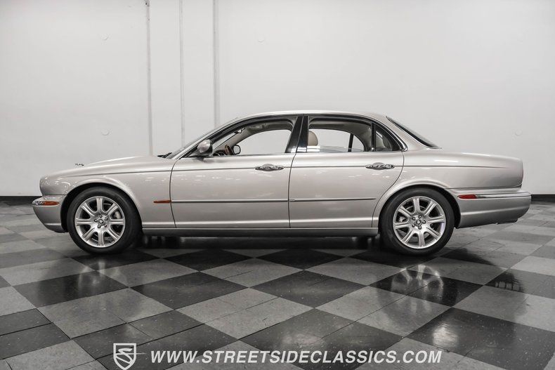 This low-mileage 2004 Jaguar XJ8 offers the best of everything. It has smooth V8 power, exceptional modern luxury, and it's all wrapped in a sleek European style. And while this offers you an executive-level experience, you can get it today for a mailroom kind of price. A sophisticated color like Platinum gives the exact right first impression for a car like this. It instantly conveys Jaguar's reputation for sophistication, performance, and tradition in one elegant hue. This car has had the best of care and has accumulated only 64,614 carefully driven miles since it was new. The body panels show off the long, low Jaguar profile is instantly recognizable as the shape that built this icon. Overall, the finish is extremely nice and definitely demonstrates the superior quality you got for your money when you bought a top-of-the-line luxury car. Complementing the elegant styling are optional factory 18-inch Dynamic Alloy wheels.