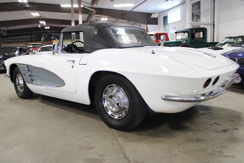 This Corvette has been owned by the seller since 1985 and believed to be original or at least mostly original including paint. That said, there are some imperfections as you would expect from paint of this era. It is so cool to see cars that have been left untouched. Loved and cared for but untouched. This is a desirable dual quad set up offering a fun 270 HP experience. The interior is in good driver condition with all gauges in good working condition. The top operates as it should, the engine compartment is in tidy unmolested condition with all stock parts still in tact. This car starts right up, idles perfectly and goes down the road very nicely with no funky noises, smells or clunks. The underside of the car is in good not rusty condition. This is one of those cars that you buy, enjoy and leave it the way it is in my opinion. This car comes with window sticker and original owners manual along with key for antennae. I really like the 61 as it is still a solid axle C1 but starting to transition to a C2 with the updated rear end. This Corvette has been properly owned, stored and cared for and is a three-owner car from new with the first owner being a Professor in Indiana, then to Grand Rapids and finally to our seller in 1985. These cars are becoming hard to find in this condition as most of them have had some sort of restoration along the way. Do not miss this opportunity. We welcome any questions and inspections here in our Traverse City location and look forward to talking to you.