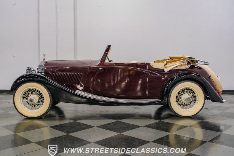 Under the long bonnet sits the heart of this classic: a 3.1 Liter Inline 6-cylinder engine. The mechanicals appear all stock, very clean, and everything looks correctly hooked up. The car starts right up and idles smoothly, a testament to the longevity of Rolls-Royce engineering. The engine is paired with a non-synchronized 4-speed manual transmission and the car utilizes a traditional suspension setup with a straight axle and leaf springs up front and a solid axle with leaf springs in the rear. Stopping is handled by four-wheel drum brakes.
