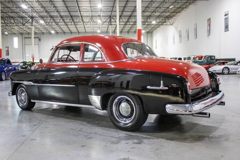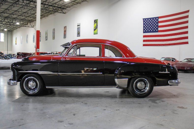 This 1951 Chevrolet Deluxe Coupe blends classic postwar styling with a carefully curated mix of performance upgrades and period-correct ingenuity. Finished in glossy black with a striking two-tone red top, the car sits with an understated yet confident presence, accented by black wheels with chrome hubcaps. Inside, the fully custom red and white leather interior delivers a bold, vintage-inspired cabin that complements the exterior's timeless look.