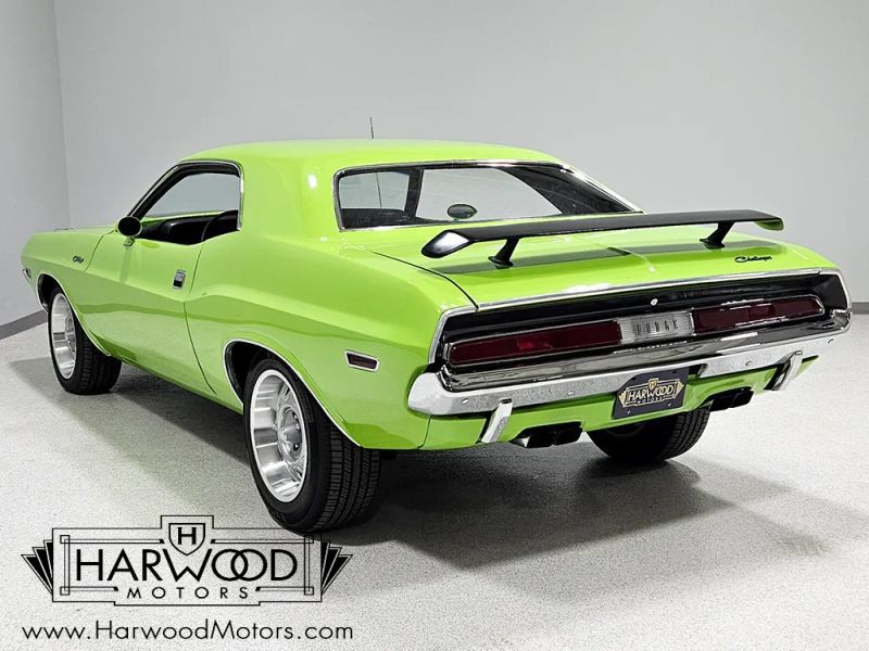 Someone knew what they were doing when they ordered this cool Challenger. Brilliant paint, a potent small block, and a few creature comforts to make it civilized on the street. It certainly has the right performance look with the blacked-out hood treatment, hood pins, and Go-Wing on the back, and obviously youre not going to be sneaking around with that spectacular Sublime paint job. This car practically glows in the dark! Fit and finish are excellent throughout and for an E-body, the doors close with a solid THUNK rather than a hollow whap, and thats pretty hard to do on one of these cars. Panel gaps are good all around, theres a deep shine to the final finish, and, well, we cant find many nits to pick. It was obviously an expensive restoration that has received proper care since it was completed. This is a really nice car!