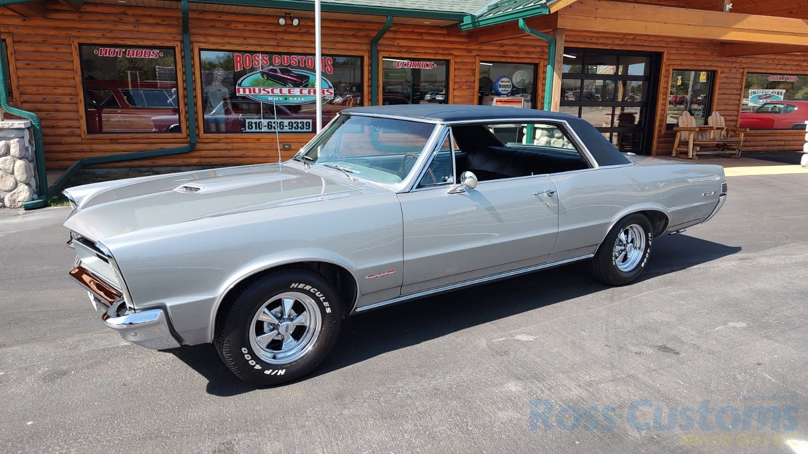This is an "Absolutely Gorgeous" "Show Quality" 65 GTO that has had a recent rotisserie restoration, rust free all original panel car, done in stunning Silver Metallic, basecoat clearcoat, sanded and wheeled smooth, new black vinyl top, at time of restoration had all new tinted glass, original window stainless moldings have been re-polished in excellent condition, original vinyl top and drip rail moldings look like new, all new weather stripping and windows felts; including vent window rubbers, upper door and quarter trim are original in excellent condition, new door handles, new side view mirror, original grills in excellent condition, headlight bezels have also been re-chromed, original T3 headlights, re-chromed original front bumper, new emblems all around, wheel well and rocker moldings are original in excellent condition, taillight bezels and tail panel applique appear to be re-chromed in excellent condition, original rear bumper, with optional backup lights which has been re-chromed.