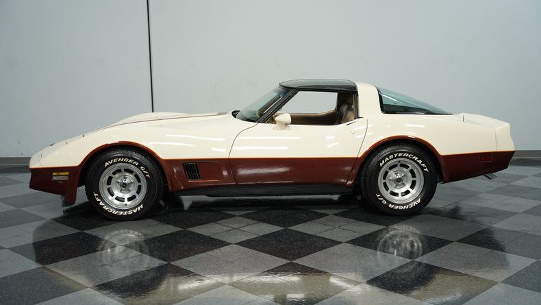 This highly original 1981 Chevrolet Corvette boasts a rare two-tone Cream Beige and Dark Bronze paint scheme that gleams in the sunlight, a testament to decades of meticulous care. The C3's iconic silhouette remains as striking today as it was in '81, with Transparent T-tops ready for open-air adventures. Rolling on factory 15-inch wheels wrapped in beefy 255/60R15 rubber, this Corvette combines classic style with road-gripping performance. Dark Bronze accents complement the sleek bodywork, creating a quintessential American sports car aesthetic.