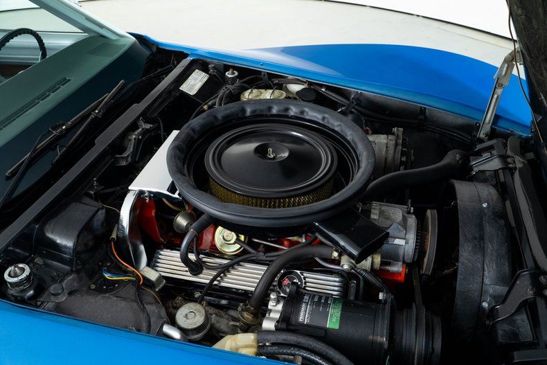 The Bright Blue exterior with removable T-tops highlights the unmistakable lines of the Corvette Stingray. Inside, the silver leather interior shows off factory originality and features air conditioning, tilt and telescopic steering, power brakes, and power steering.