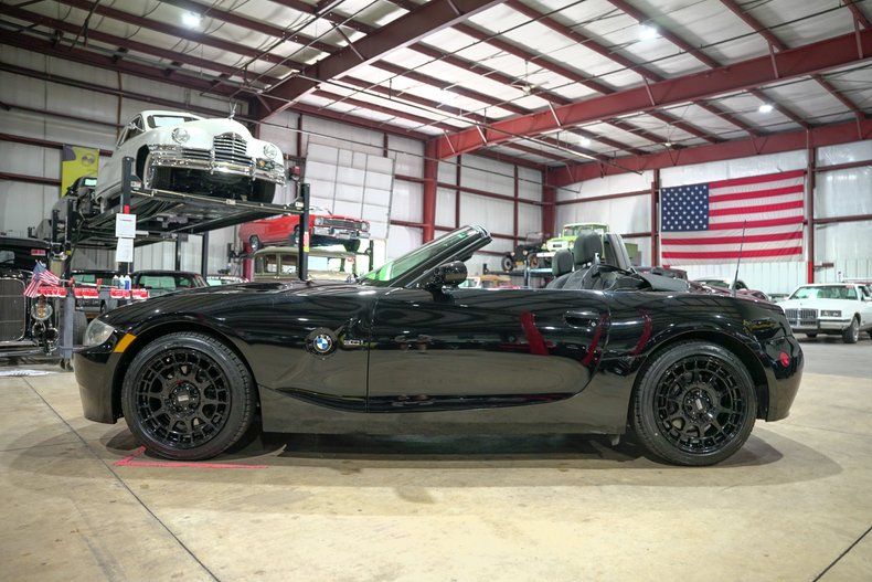 GR Auto Gallery is excited to present this 2006 BMW Z4 3.0i Roadster finished in a deep Black Sapphire Metallic exterior with a matching power convertible top and a refined black leather interior. The long hood, short deck proportions, and sculpted body lines make the Z4 an unmistakable roadster, carrying forward BMW's tradition of sleek and athletic design. With its aggressive stance and classic kidney grille, this Z4 strikes the perfect balance between modern elegance and timeless sports car character.