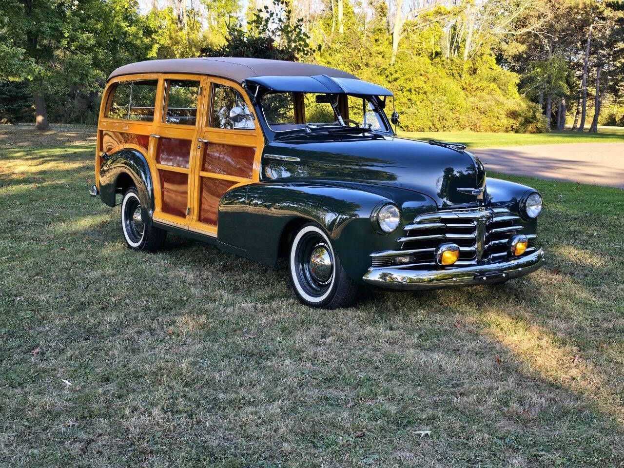 The 1948 Chevrolet Fleetmaster Woody Wagon. THE LAST TRUE WOODY by Chevrolet! We have it here at GLCC. Beautifully Restored and Absolutely Gorgeous! Real Wood Sides and Doors. Our Wagon has had the benefit of having Vintage Air Conditioning, Automatic with OD Transmission, and Air Suspension along with the High Quality Professional Restoration it received. It doesn't get any better than this. Call us for further details We sell and ship worldwide.