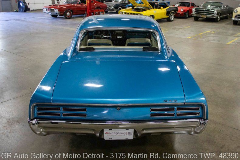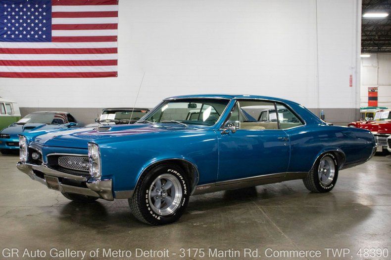 GR Auto Gallery is pleased to present this 1967 Pontiac GTO for your consideration. Dressed in a striking Tyrol Blue exterior paired with a pristine Parchment white interior, this GTO stands out. Under the hood, you'll find a 400 cubic inch V8 engine, coupled with a smooth 700 R4 automatic transmission. This meticulously cared-for classic comes with numerous enhancements, including a new wiring harness and a new radiator added in 2023. You'll appreciate the retro aftermarket stereo system, a mild Comp cam for enhanced performance, and a beautifully reupholstered interior. Additional features include all-new air conditioning components (minus the compressor), the original window sticker, Firehawk tires, American Racing wheels, elegant wood-grain accents within the interior, Sunpro gauges, a full-size spare tire, and a spacious trunk. This GTO underwent a full frame-on restoration in the early 2000s, making it a true gem that's ready to be enjoyed. Drive this one out of our showroom or have us assist with shipping it to you anywhere in the United States! Don't hesitate to call us with any questions or for more information.