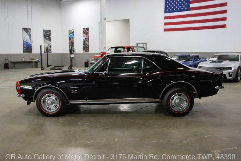 GR Auto Gallery is pleased to present this stunning 1967 Chevrolet Camaro RS/SS for your consideration. This true RS/SS example has undergone a meticulous frame-off restoration and is finished in sleek Black over a matching Black interior. Power comes from a strong 396 cubic inch V8 paired with an automatic transmission and a 12-bolt rear end. With just 4,624 miles on the restoration, this Camaro remains exceptionally fresh. It features a fresh interior with crank windows, an SS steering wheel, disc front brakes, red line wheels, and a full-size spare tire. Additional highlights include paint protection film, car cover, and much more. Drive this one out of our showroom or have us assist with shipping it to you anywhere in the United States! Don't hesitate to call us with any questions or for more information.