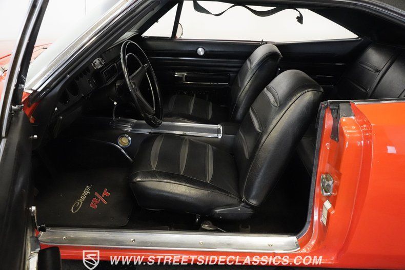 Inside, the Charger offers a beautifully restored, factory-style interior that exudes vintage authenticity. The vinyl interior is clean and well-maintained, with door panels, seats, carpet, and headliner all presenting in excellent condition and showing only slight signs of age. A full floor console adds to the classic muscle car experience, while the mid-dash section reflects the vehicle's history with character. The interior promises comfort and style true to the original design, ideal for those who appreciate period-correct details.