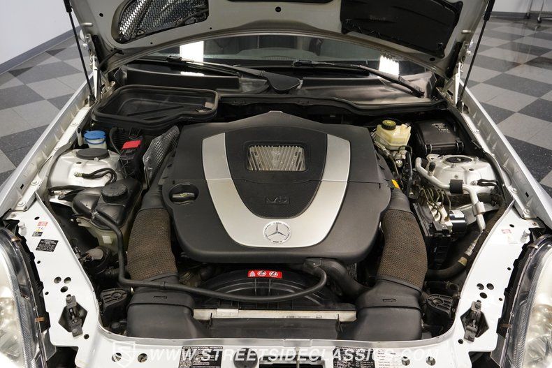 Under the hood, the SLK350 boasts a smooth and responsive 3.5-liter V6 engine paired with a 6-speed manual transmission, delivering a driving experience that is both engaging and refined. The engine has been well maintained with recent servicing, including spark plugs and coils, ensuring reliability and performance. Electronic fuel injection and factory dual exhaust contribute to the car's spirited power delivery. Four-wheel power disc brakes, power steering, and a clean engine bay enhance the driving dynamics, making this Mercedes a joy to pilot whether on winding roads or cruising the highway.