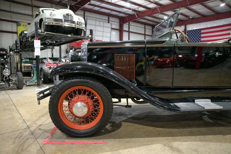 The cabin features black leather upholstery with simple yet elegant detailing, a wood-rimmed steering wheel, and well-preserved original-style gauges. The craftsmanship and layout evoke the spirit of open-air touring during a more romantic era of motoring. The iconic rumble seat, often referred to as the "mother-in-law seat", adds both character and charm, giving passengers an unforgettable open-air ride in true vintage fashion.